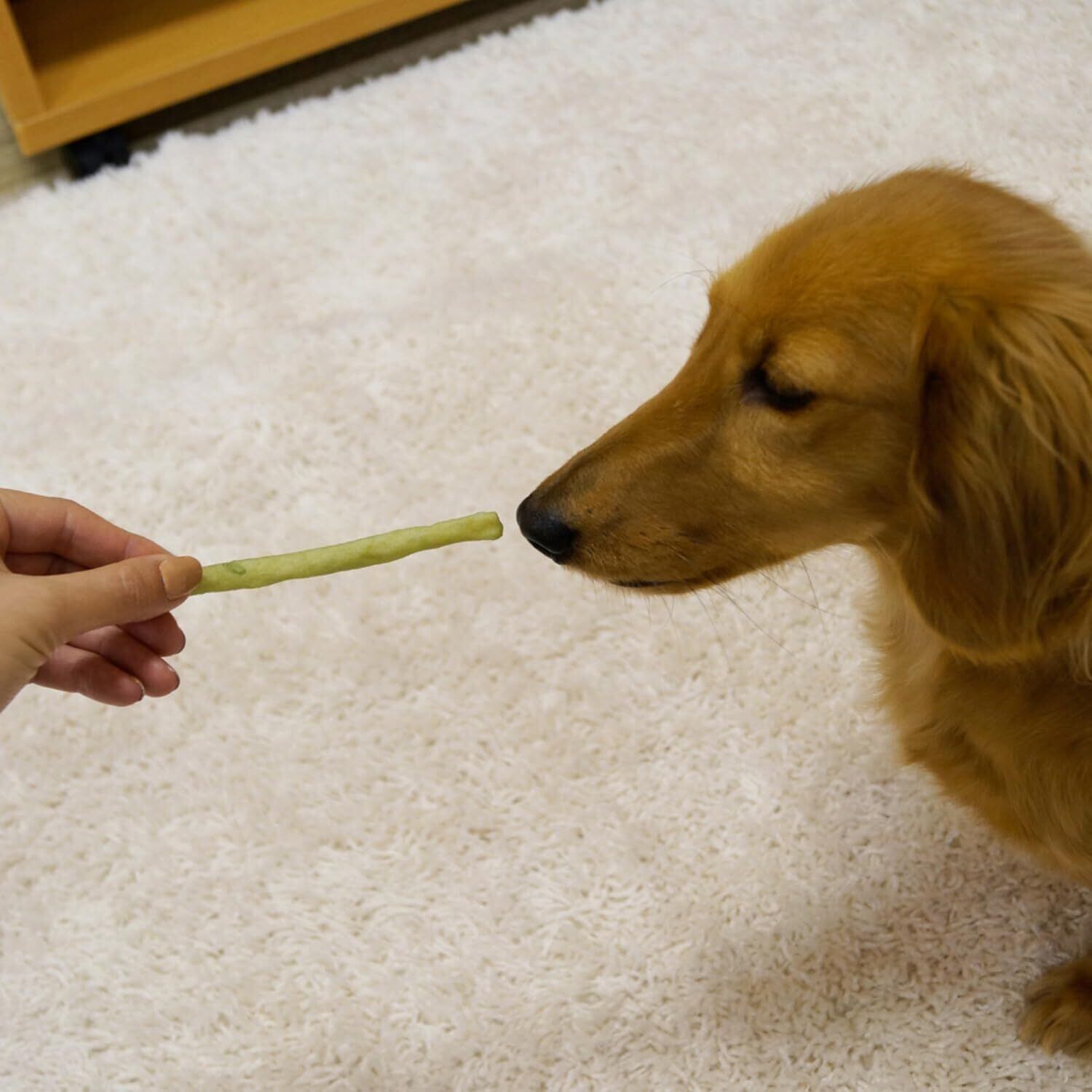 【原材料】牛皮、クロロフィル【成分】粗たん白質:70%以上、粗脂肪:0.5%以上、粗繊維:1%以下、粗灰分:5%以下、水分:20%以下【エネルギー】350kcal/100g