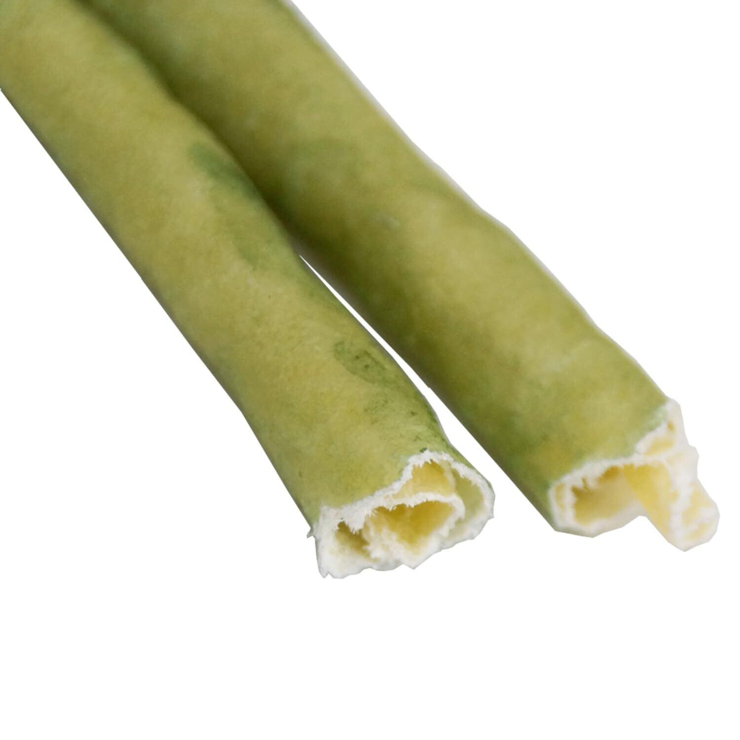 ●特殊構造の薄い牛皮を巻いて作ったスティックタイプ。小型犬に与えやすいサイズ。