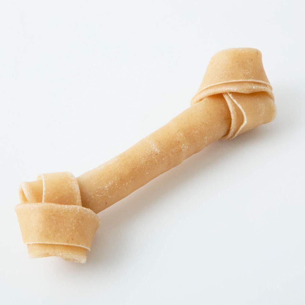 結び目のついた骨型ローハイド製品。 手で持ちやすい形状の定番商品です。