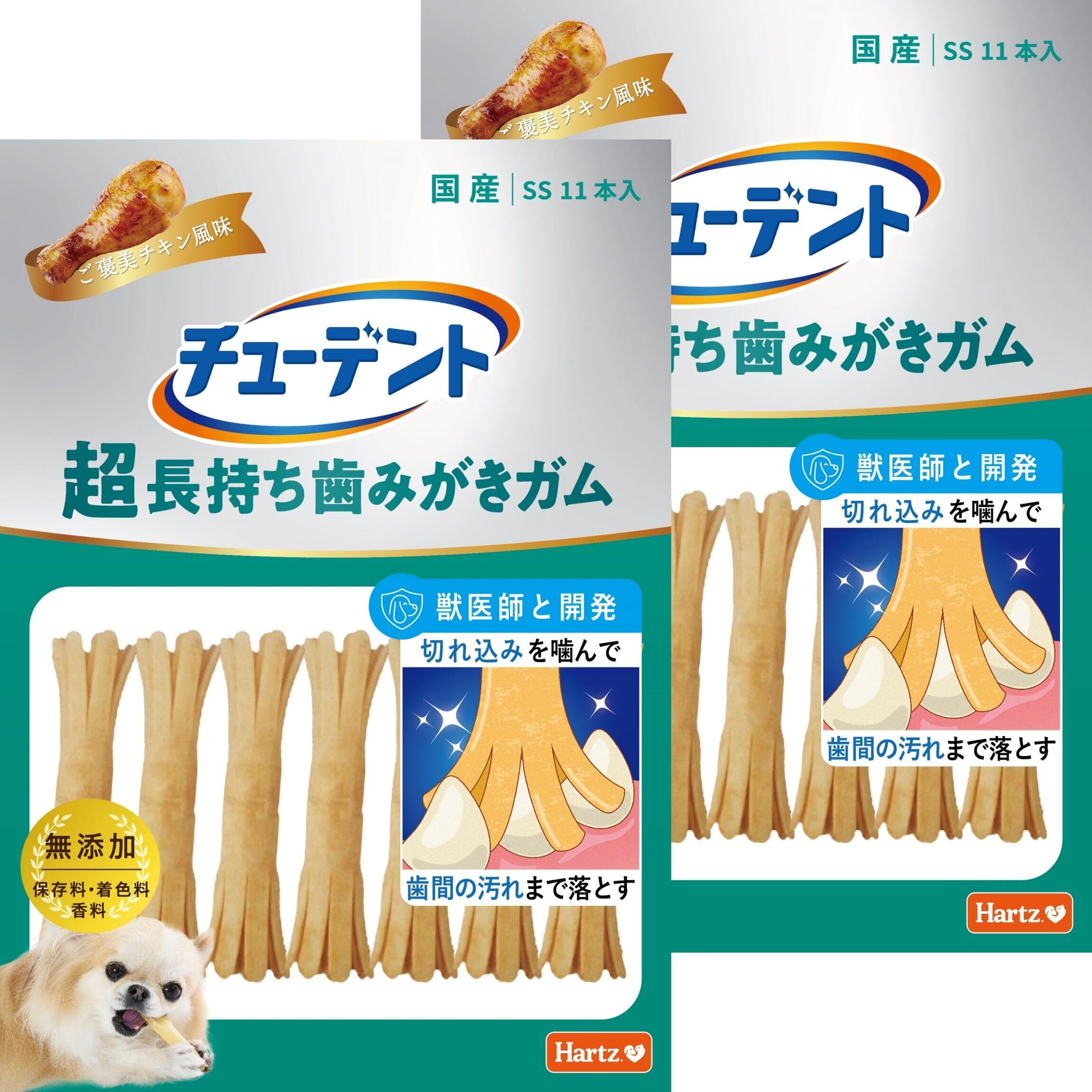 チューデント 超長持ち歯みがきガム SS 超小型犬 ご褒美チキン風味 11本入×2袋 ハーツ(Hartz) 犬用おやつ 犬用ガム 歯磨き デンタルケア 獣医師と開発 愛犬ゴキゲン ながーく噛んで無理なく歯みがき