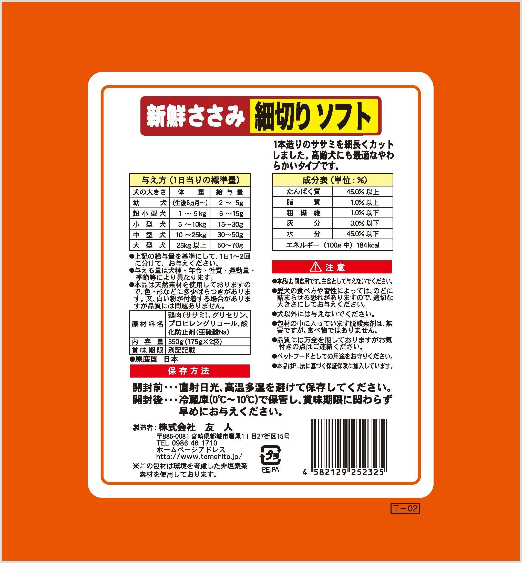 友人 犬用おやつ 新鮮ささみ 細切りソフト 350g(175g x 2) 国産