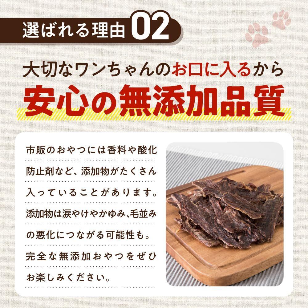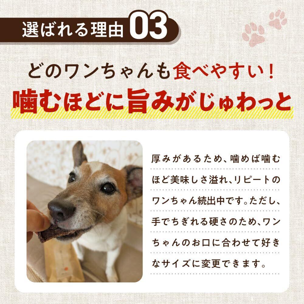 #2 \国産無添加品質、食いつきが違う!/ 原材料は赤身の馬肉のみ!馬肉をスライスした一枚肉をそのまま乾燥しました。香料、着色料・調味料・保存料・酸化防止剤は添加せず、素材そのままの旨味をワンちゃんに!さらに、国内生産のため安心してお与えいただけます!