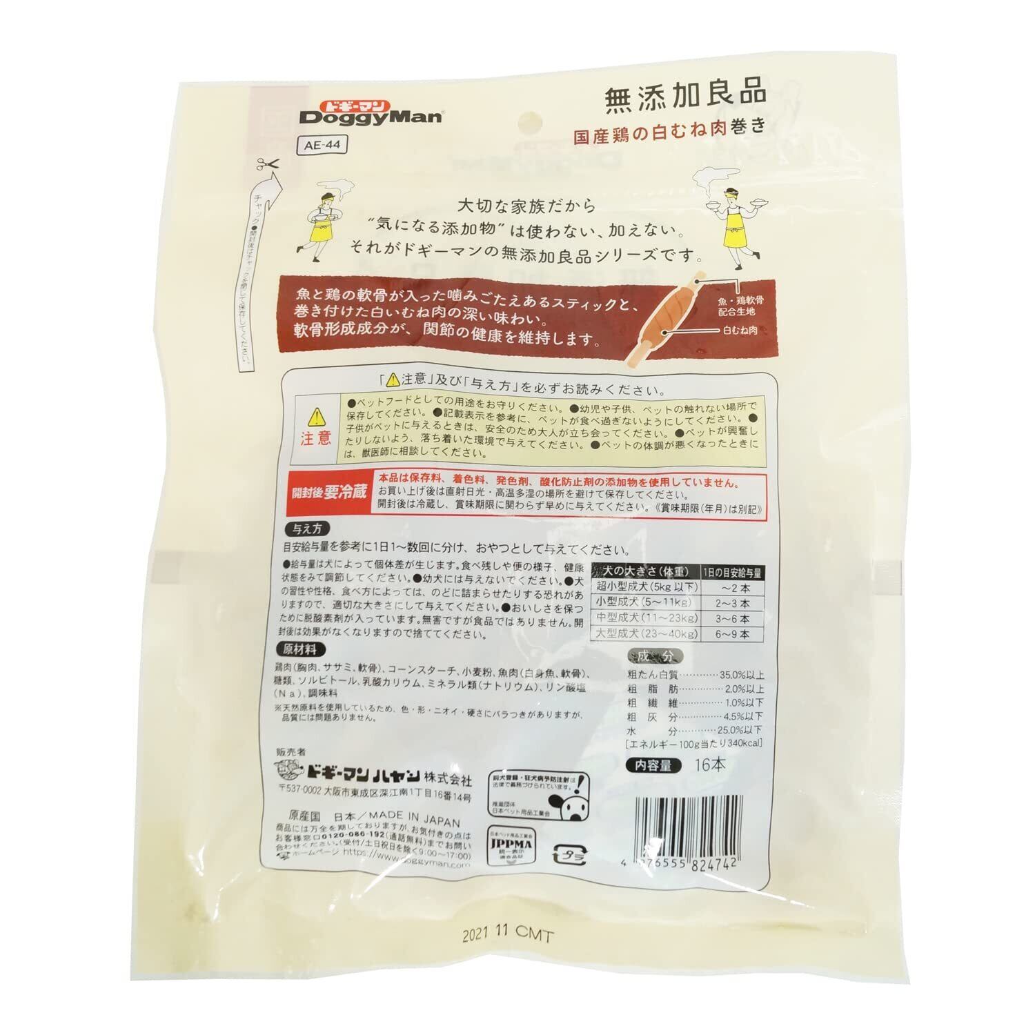 ドギーマン 犬用おやつ 無添加良品 国産鶏の白むね肉巻き 1袋16本
