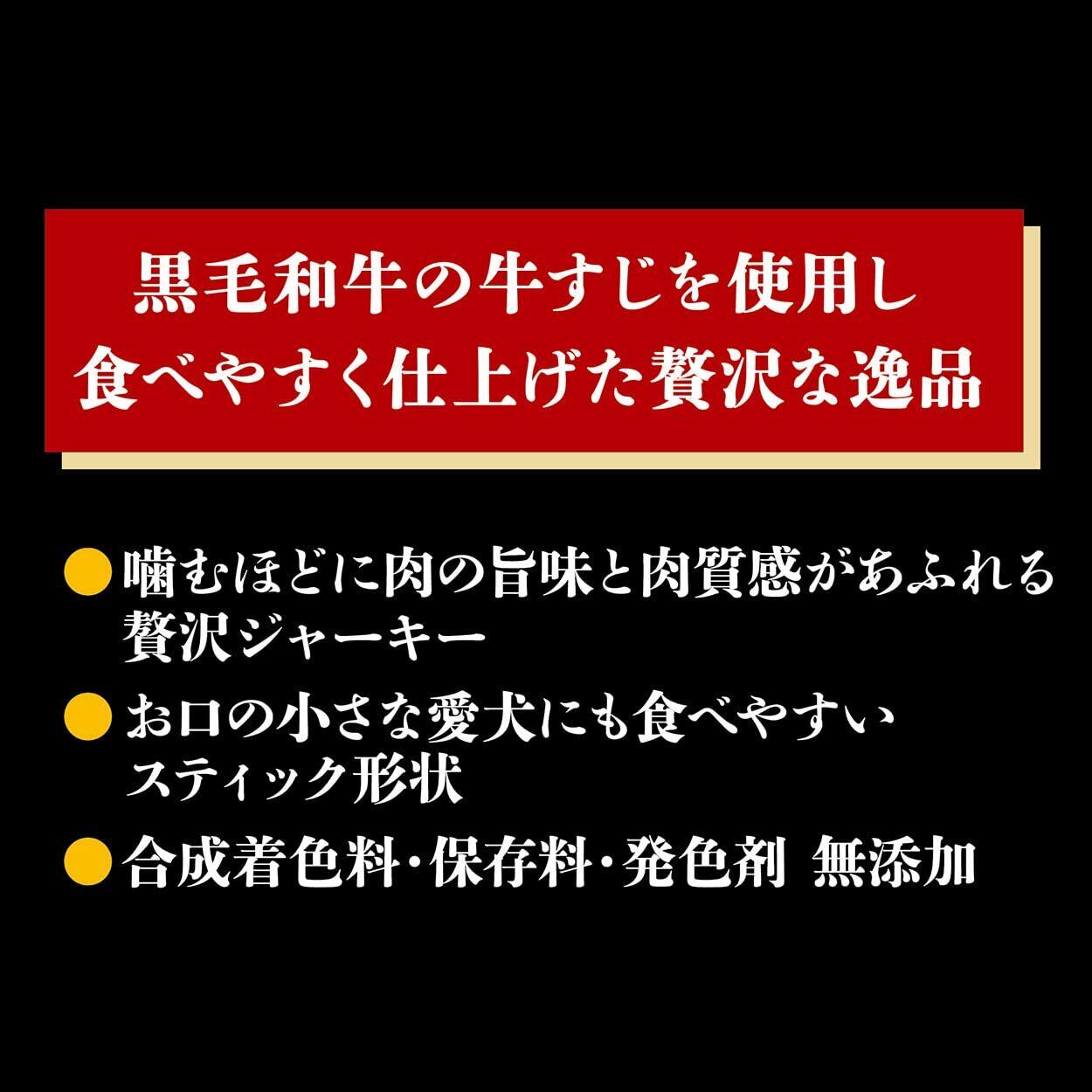 ・コラーゲン豊富な和牛の牛すじを使用し、食べやすく仕上げた贅沢な逸品です。 ・噛むほどに肉の旨味と肉質感があふれる贅沢ジャーキーです。 ・お口の小さな愛犬にも食べやすいスティック形状 ・合成着色料、保存料、発色剤 無添加