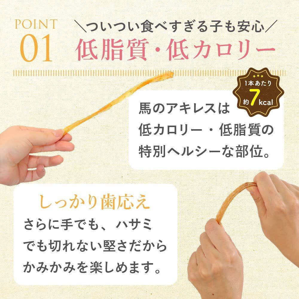 #2 \国産無添加品質、素材の旨味を凝縮したジャーキー!/ 原材料は希少な馬のアキレス腱のみ!香料、着色料・調味料・保存料・酸化防止剤は添加せず、素材そのままの旨味をワンちゃんに!