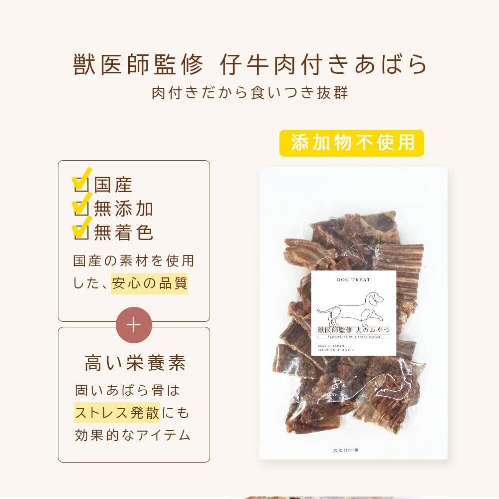 【国産 無添加 無着色】国産 仔牛 あばら 220g / ペット用骨 肉付き あばら骨 牛肉 歯磨きガム の代用品としても 犬のおやつ 犬用