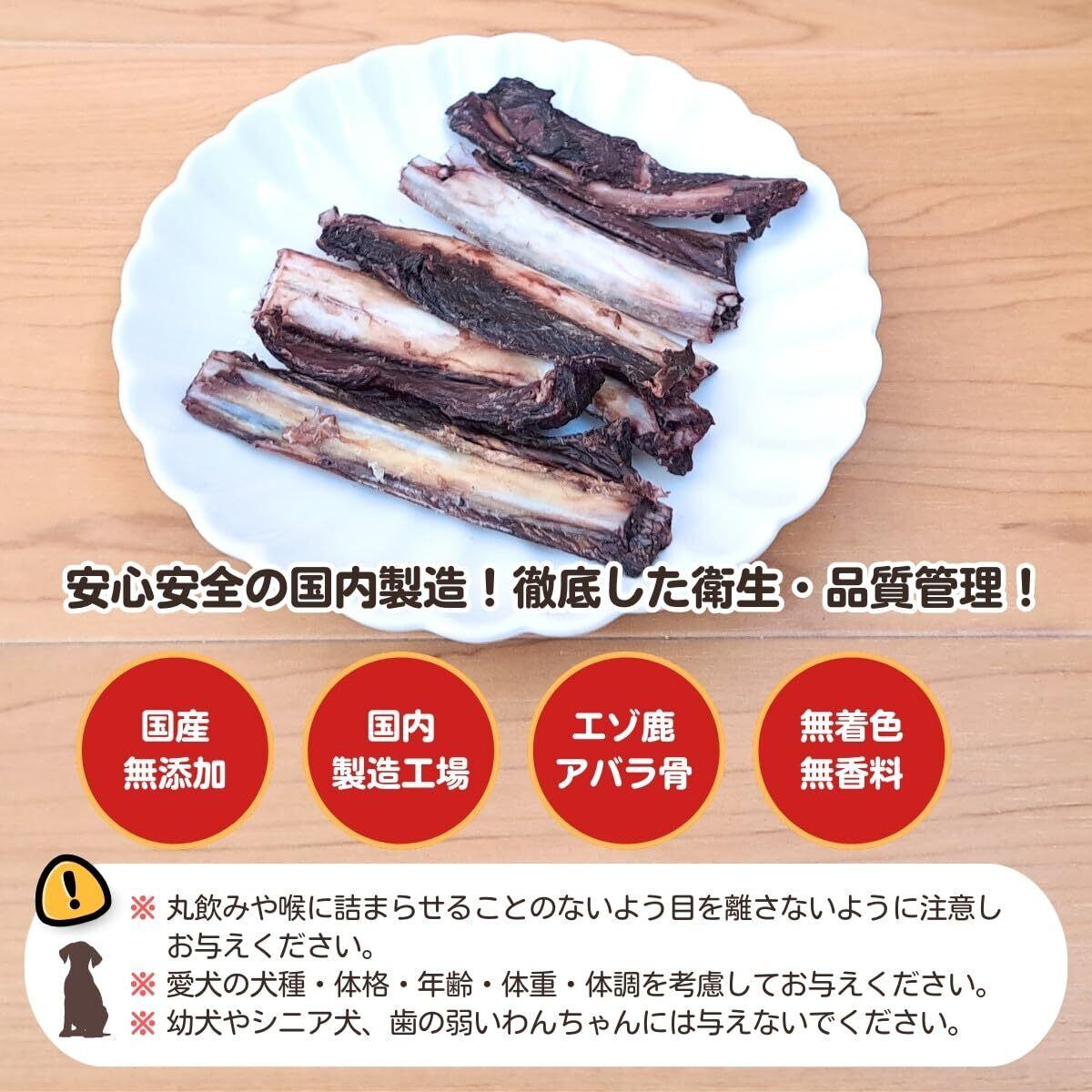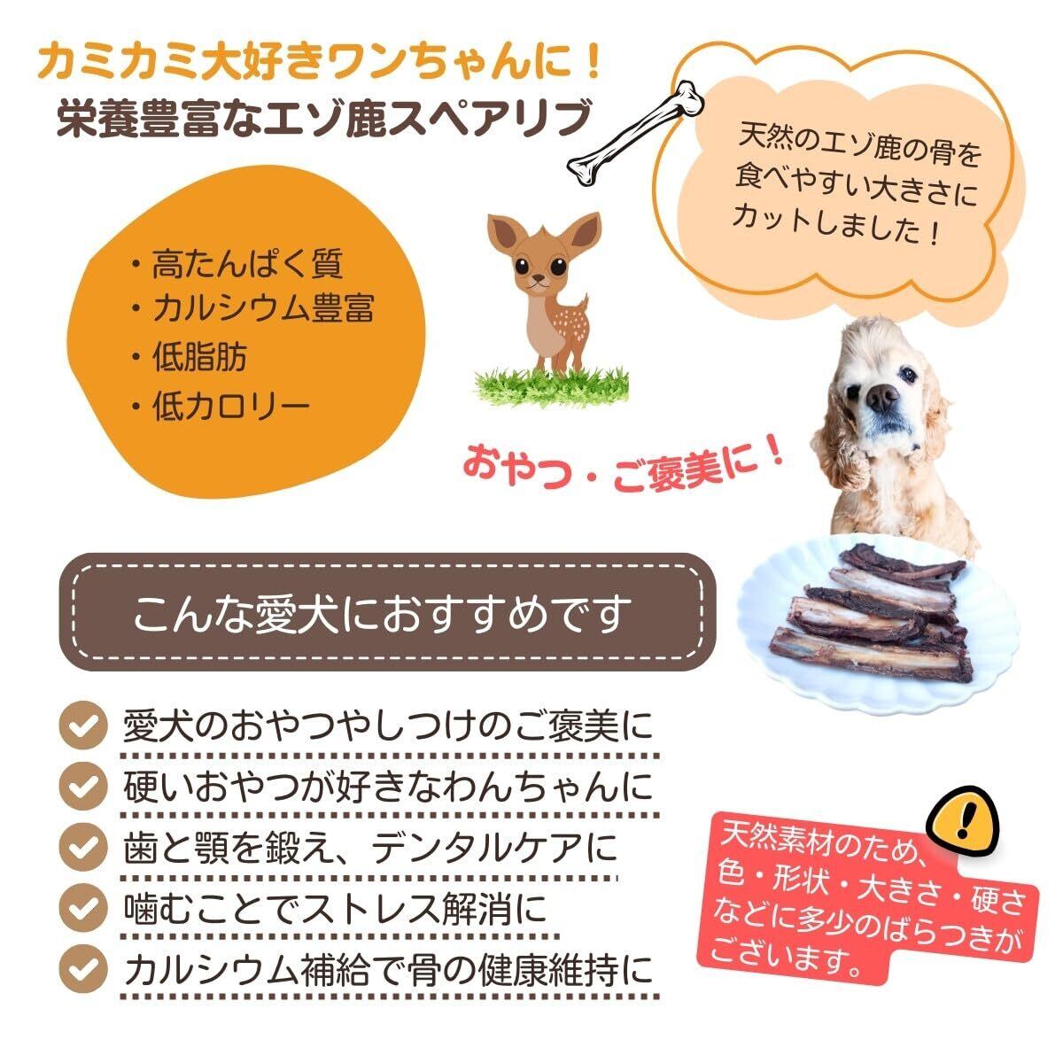 ※天然素材のため、色や形や大きさにバラつきがございます。鹿スペアリブは硬めの素材ですので、丸飲みや喉に詰まらせることのないよう、必ず手で持って目を離さないように注意しお与えください。