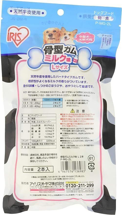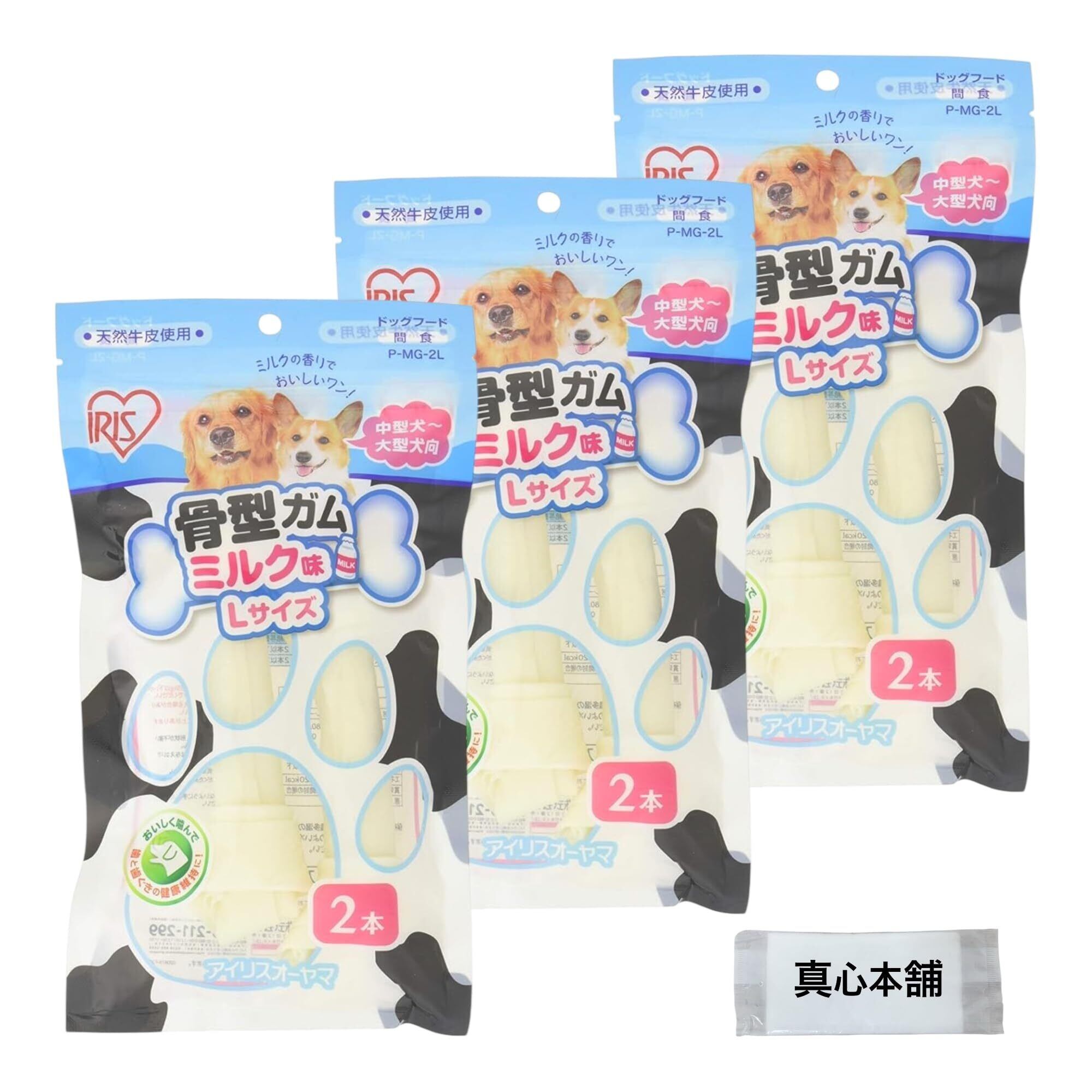 【まとめ買い】アイリスオーヤマ 犬 おやつ 骨型ガム ミルク味 Lサイズ 中型犬〜大型犬用 2本入 3袋セット