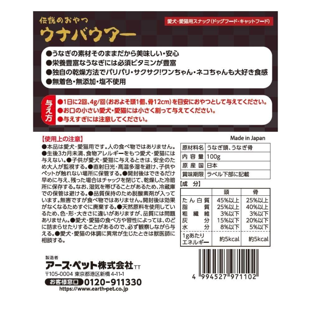 アース・ペット 伝説のおやつ ウナバウアー 犬用 猫用 おやつ 完全無添加 無塩 無着色 栄養豊富 鰻頭 うなぎ 魚 骨 ボーン 国産