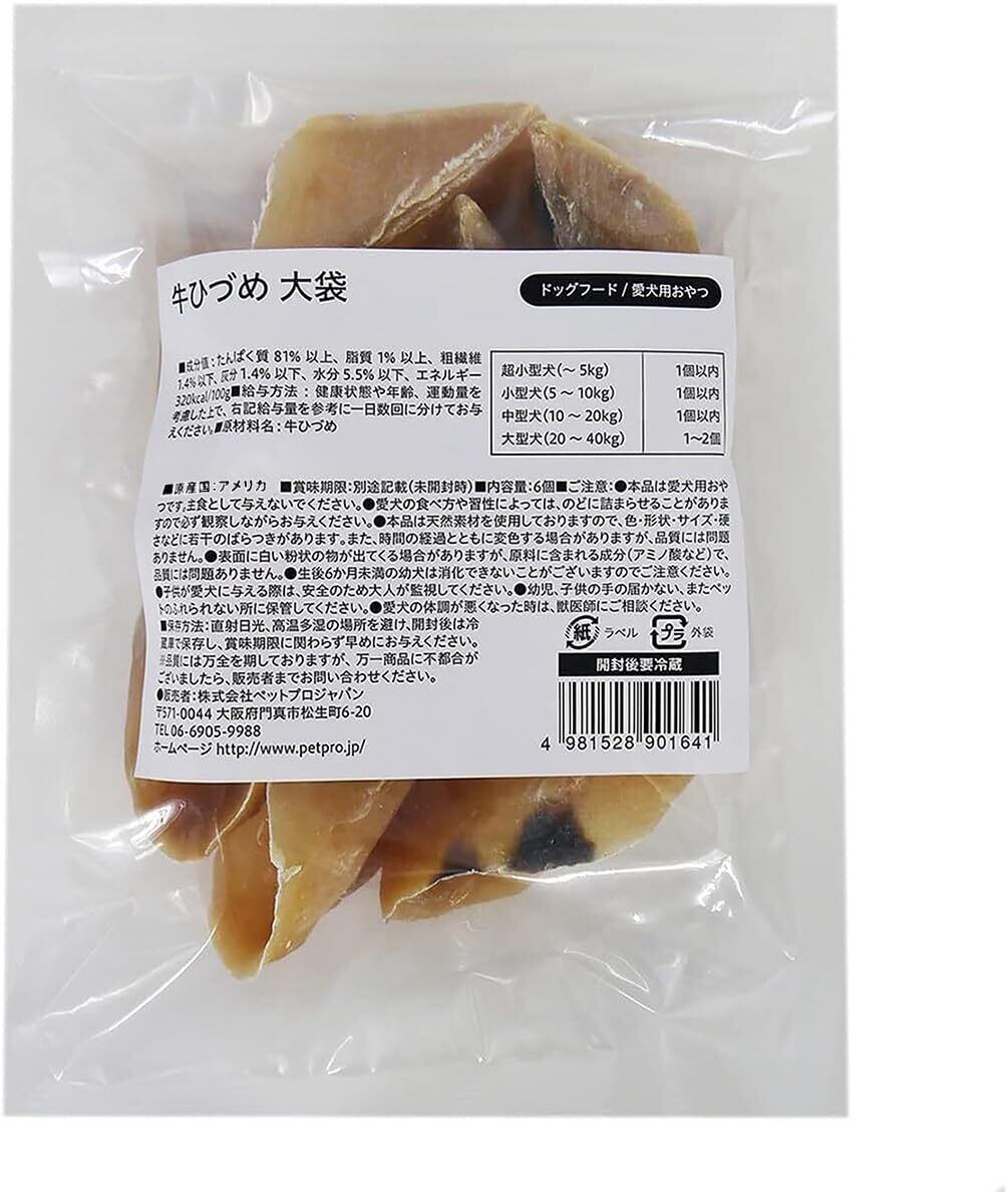 【原材料】 牛ひづめ 【成分】 たんぱく質81%以上、脂質1%以上、粗繊維1.4%以下、灰分1.4%以下、水分5.5%以下 【エネルギー】 320kcal/100g