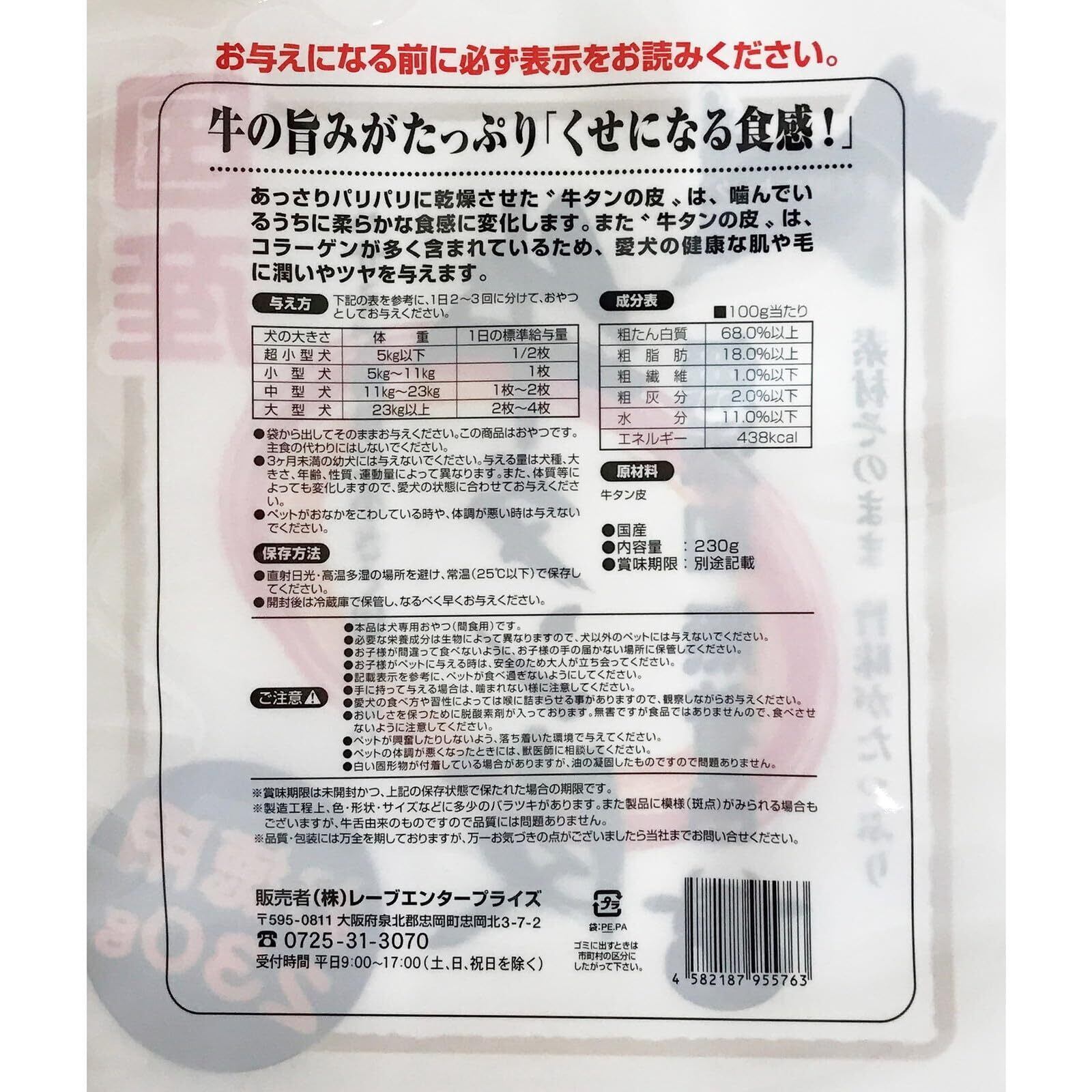 ・本品は犬専用おやつ(間食用)です。