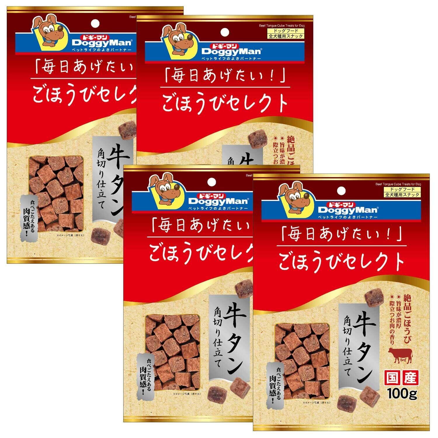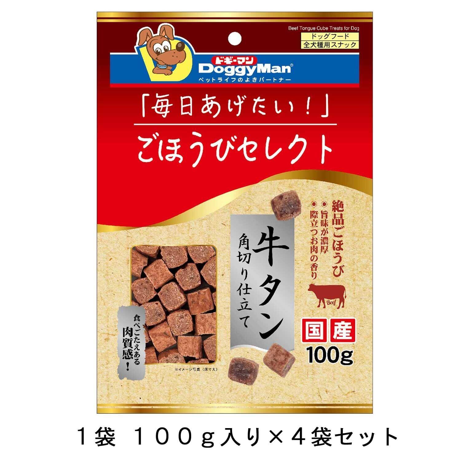 ドギーマン ごほうびセレクト 牛タン角切り仕立て プレーン 100g×4袋セット(犬用おやつ)