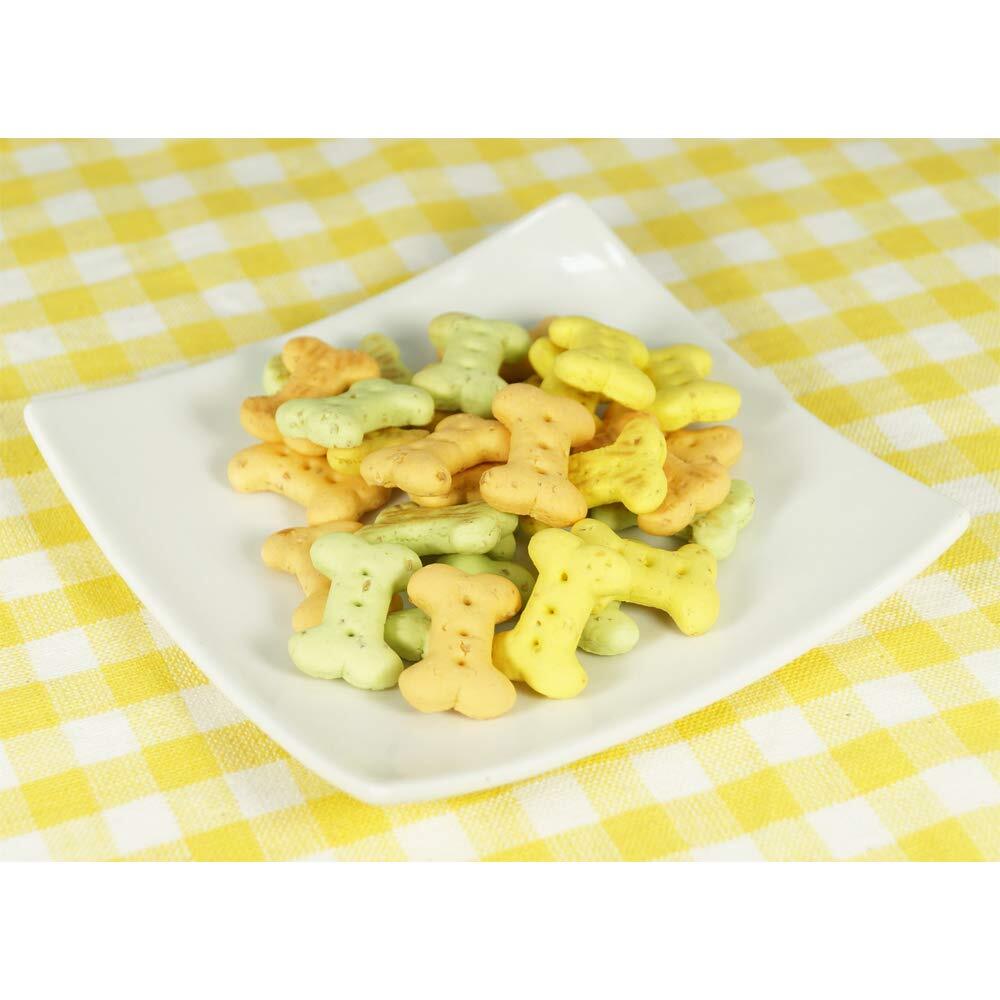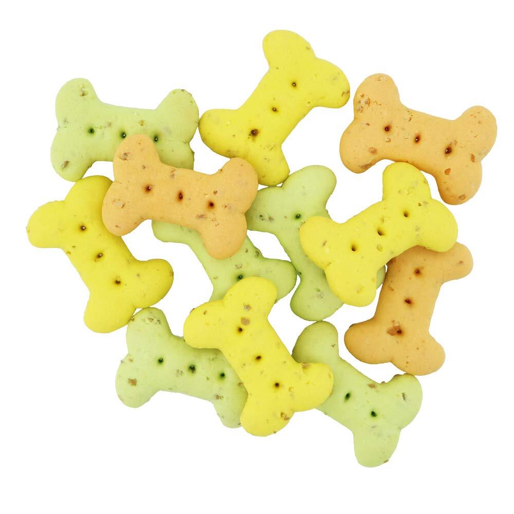 ・善玉菌の栄養となって増殖を助けるオリゴ糖、お腹の中で水分を吸収して膨らみ便を押し出す食物繊維、さらに善玉菌の代表である乳酸菌をプラス。 ・もっとお腹にやさしくなりました。香ばしさと栄養価を併せ持つ全粒粉を配合。 ・低脂肪&機能性成分を配合したヘルシーなビスケットです。 ・5つの野菜を組み合わせた3つのおいしさ。 ・おくちの小さい愛犬にも! 多頭飼いのオーナー様にもうれしい、たっぷり入ったお徳用パックです。 【原材料】 小麦粉、砂糖、でん粉類、植物油脂、野菜(キャベツ、さつまいも、にんじん、かぼちゃ、トマト)、ミルクパウダー、チコリ抽出物(食物繊維、オリゴ糖含有)、乳酸菌、膨張剤、ミネラル類(ナトリウム、カルシウム)、香料、ユッカエキス、着色料(黄4、黄5、青1)