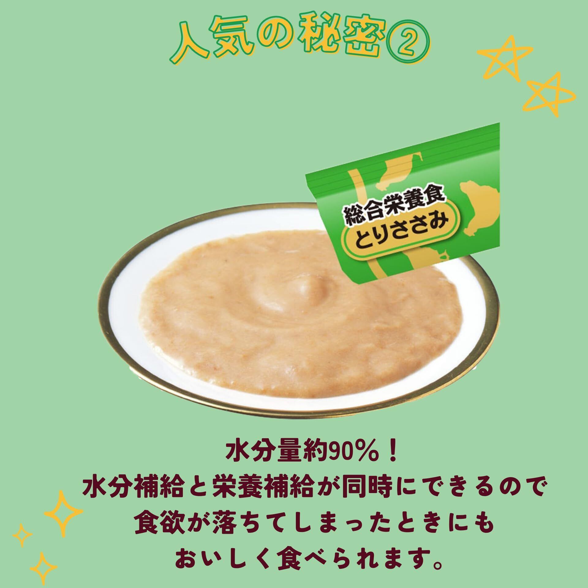 【とりささみ&さつまいも】たんぱく質…6.0%以上、脂質…1.0%以上、粗繊維…0.3%以下、灰分…1.7%以下、水分…91.0%以下、エネルギー…約8kcal/本 【とりささみ ツナ入り】【とりささみ 軟骨入り】たんぱく質…7.0%以上、脂質…1.0%以上、粗繊維…0.1%以下、灰分…1.3%以下、水分…91.0%以下、エネルギー…約8kcal/本 【とりささみ 緑黄色野菜入り】たんぱく質…7.0%以上、脂質…1.0%以上、粗繊維…0.1%以下、灰分…1.3%以下、水分…91.0%以下、エネルギー…約8kcal/本