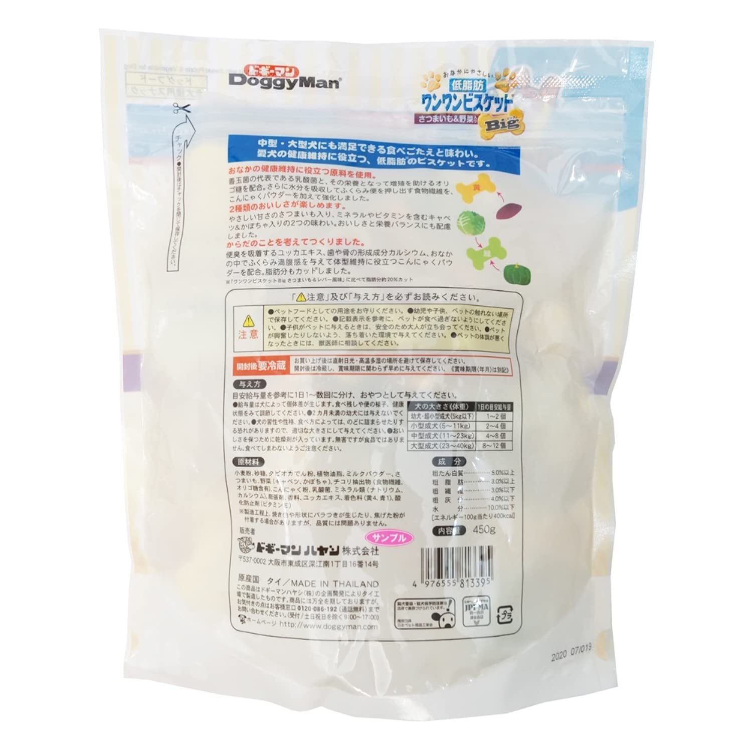 ドギーマン おなかにやさしい低脂肪ワンワンビスケット Big さつまいも&野菜入り 450g