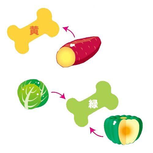 ・黄色のビスケットはさつまいも配合。甘い香りに愛犬もおおよろこび。