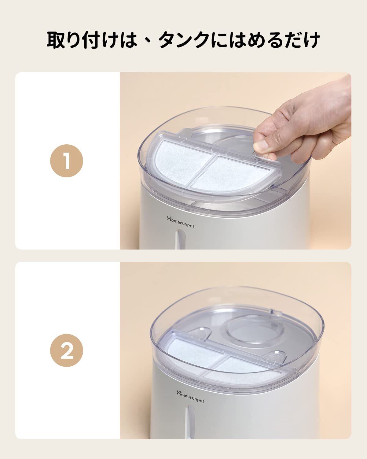 使用方法:フィルターユニットは包装から取り出したら、まず2分間水に浸して洗ってください。30日に1回交換することをおすすめします。交換の頻度はペットの数と飲水の回数によって異なりますので、実際の状況に合わせて調整してください。