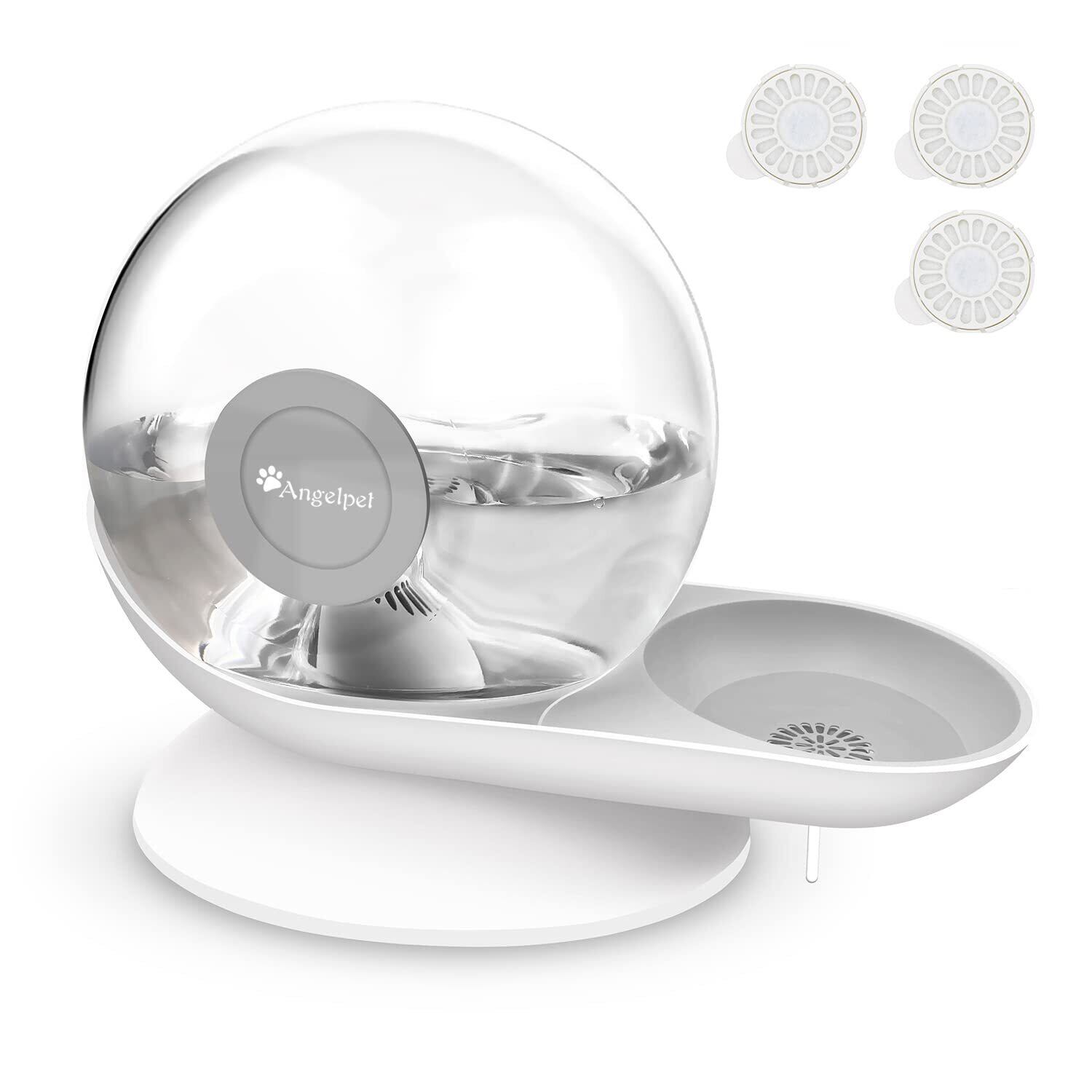 水飲み器 自動給水器 みずのみ 2.8L大容量 猫 中小型犬 フィルター付き 重力設計 自動補水 電気不要 お留守番対応 Angelpet(グレー, フィルター3枚入り)