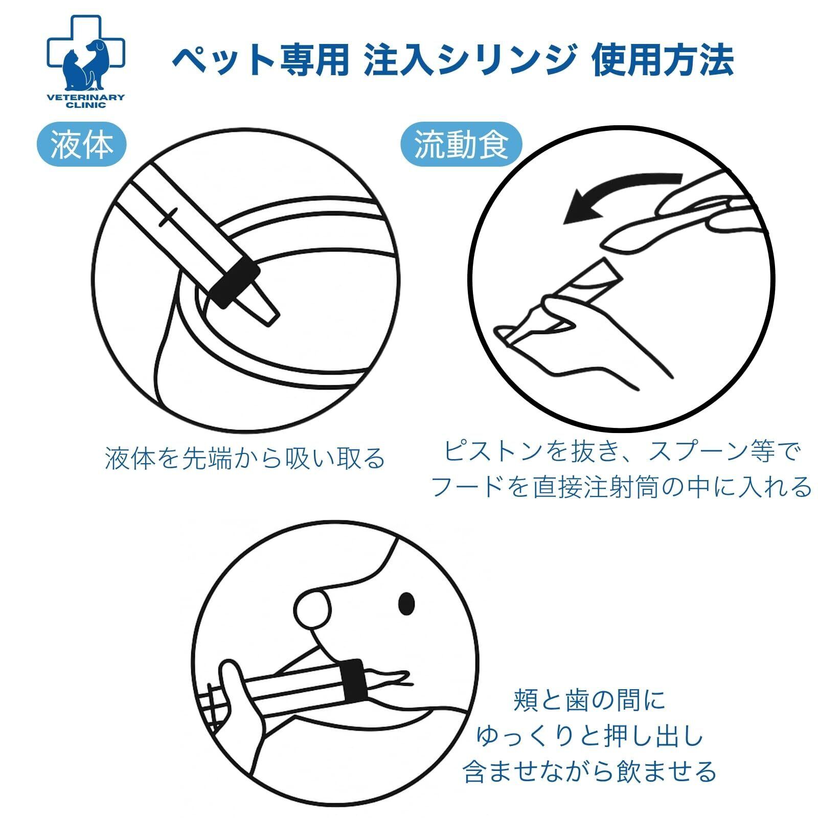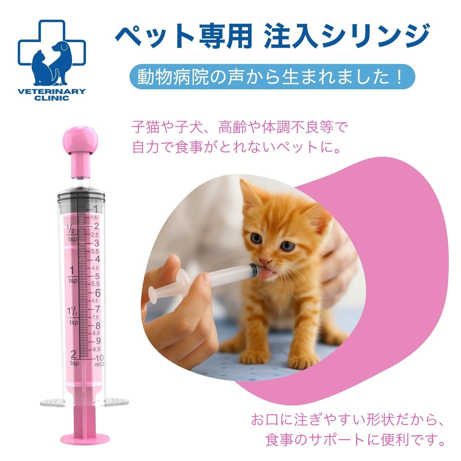 【ペット専用に設計】動物病院の声をもとに企画した安心の注入器。授乳期や介護が必要なペットにもやさしい細口タイプ。
