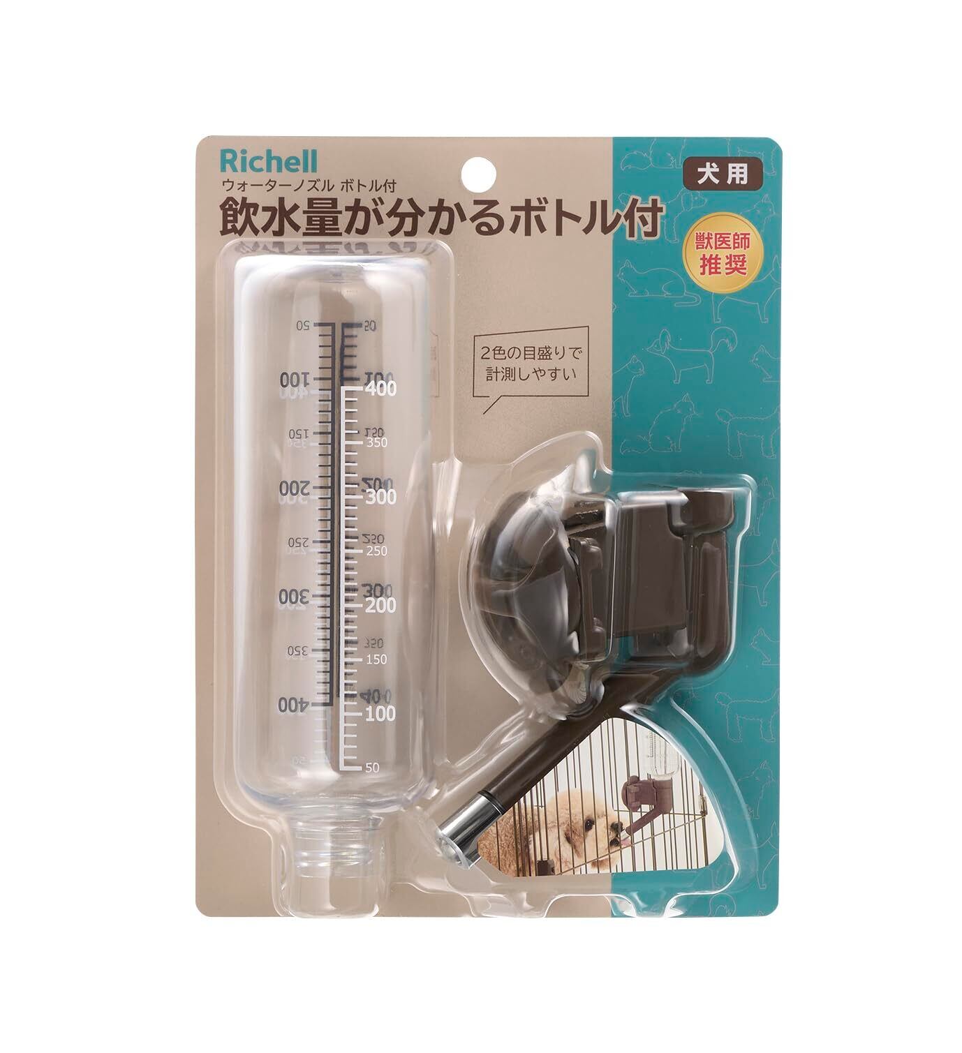 リッチェル(Richell) Nウォーターノズル ボトル付 ダークブラウン ペット 犬 給水 水飲み 取り付け 可能