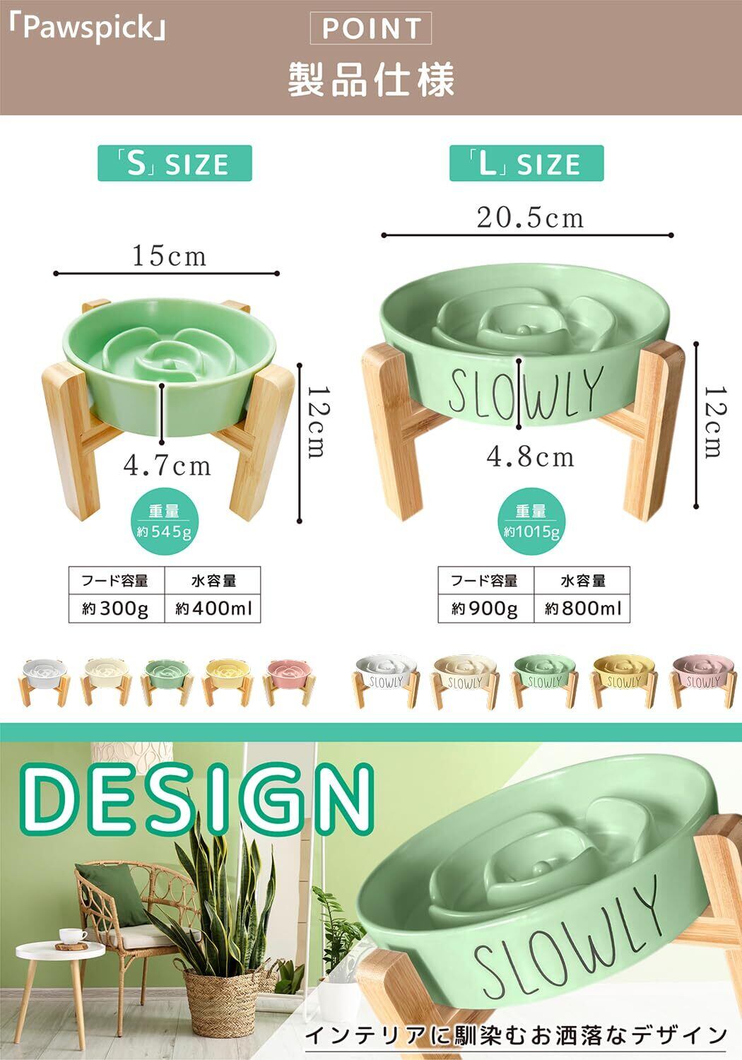 [Pawspick] フードボウル 陶器 早食い防止 食器 小型犬 猫 犬 ペット えさ皿 スローフィーダー 健康管理 スタンド付き (ホワイト, 【S】スタンド付き)