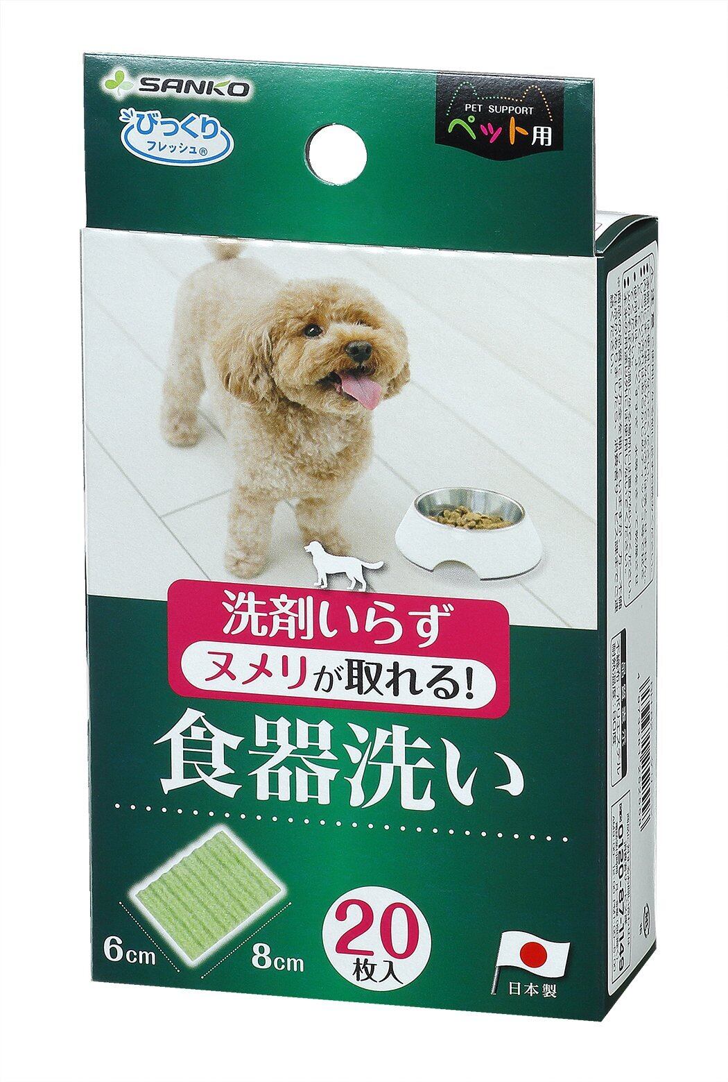 サンコー びっくりフレッシュ ペット用 食器洗い 水だけで汚れが落とせる ヌメリ落とし ぬめり取り 6×8cm 20枚入 グリーン BH-82