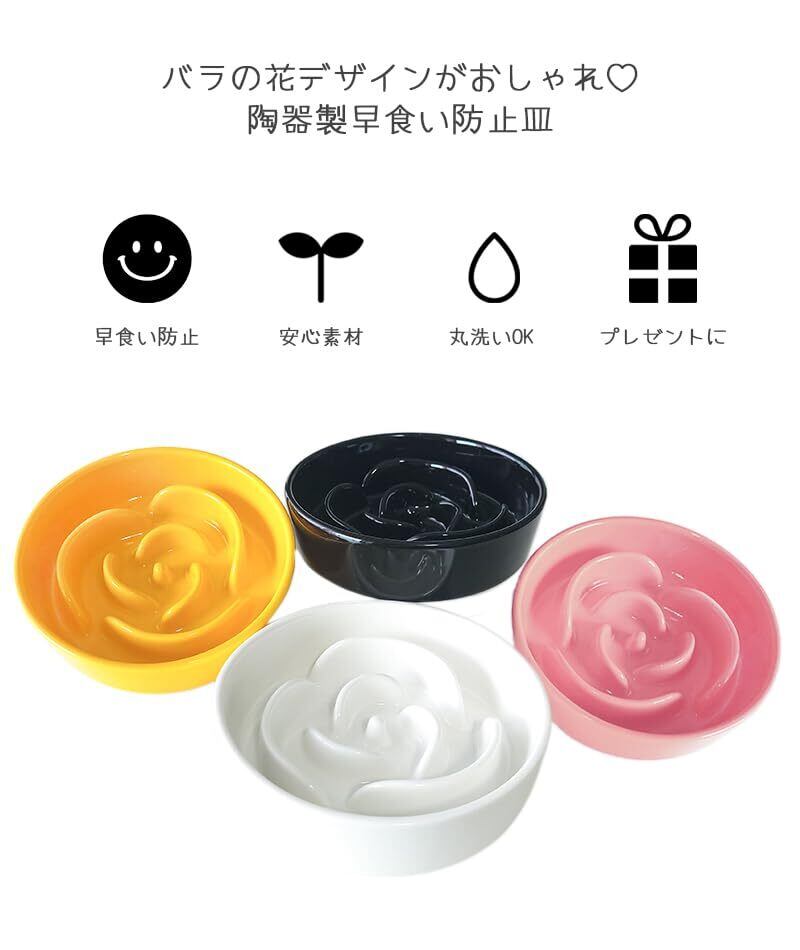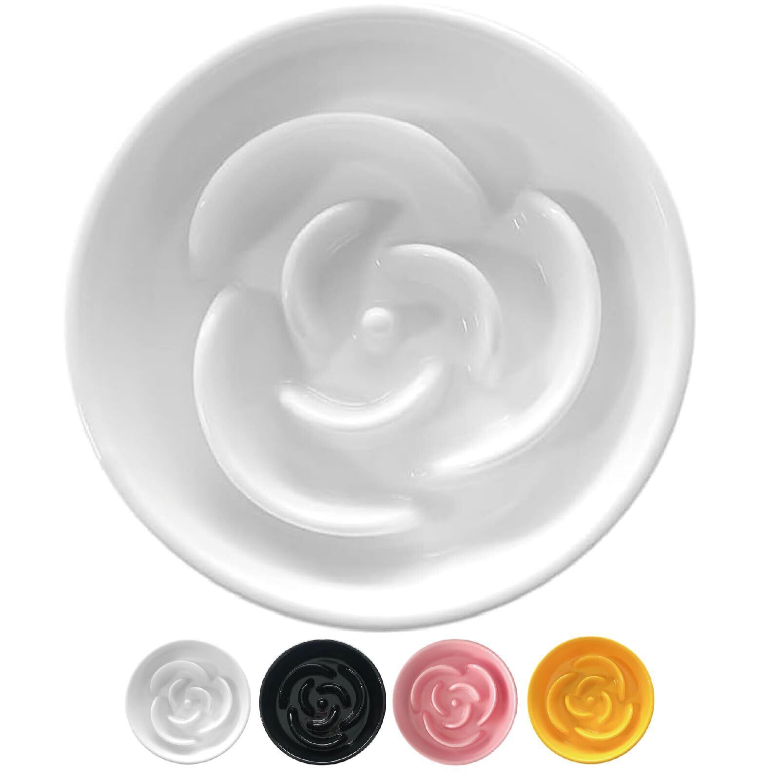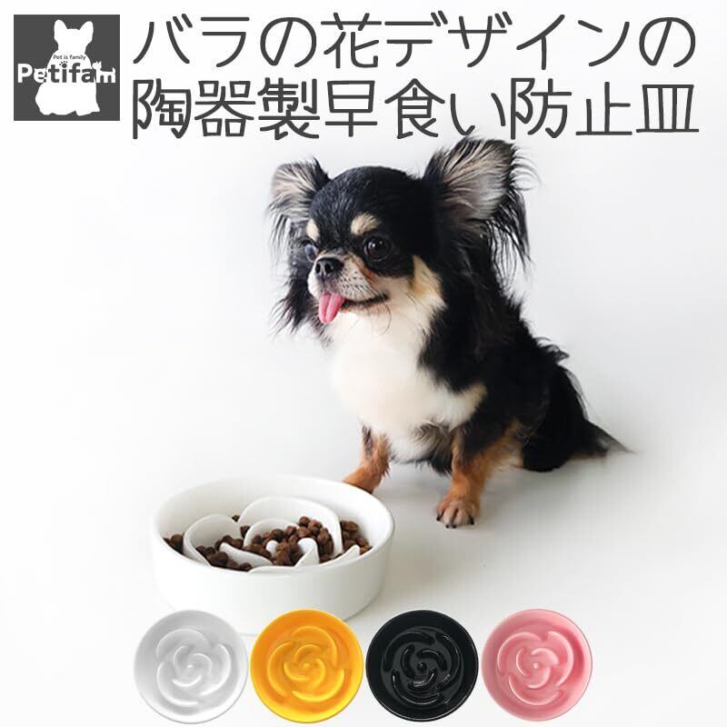 Petifam 陶器製早食い防止皿 ローズ 早食い防止 皿 陶器 犬 食器 皿 ごはん皿 エサ皿 ペットボウル フードボウル 早食い 飲み込み 吐き戻し ダイエット 肥満 カラフル ホワイト オレンジ ブラック (ホワイト S)