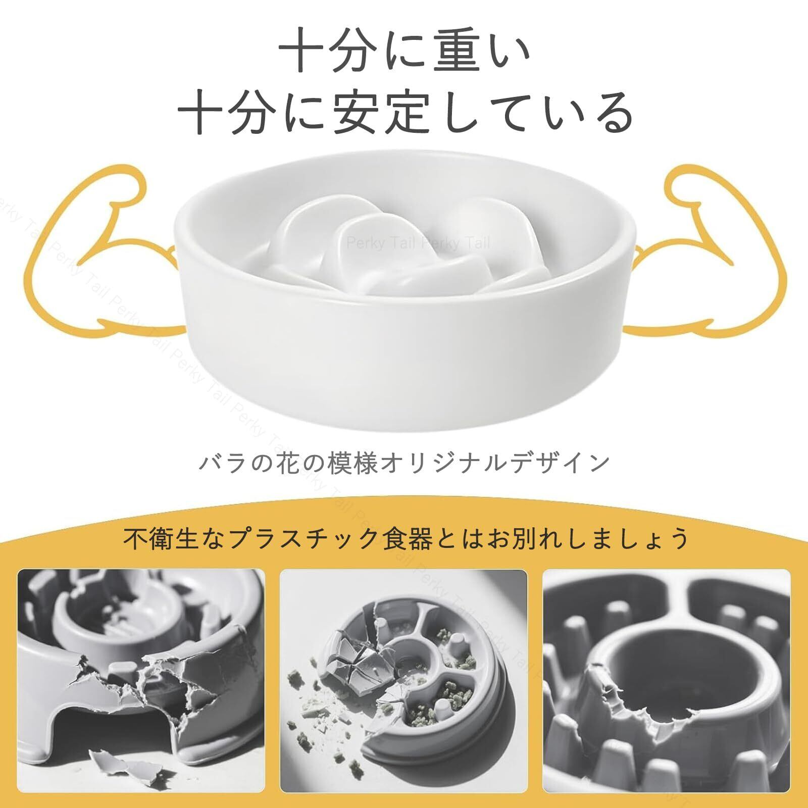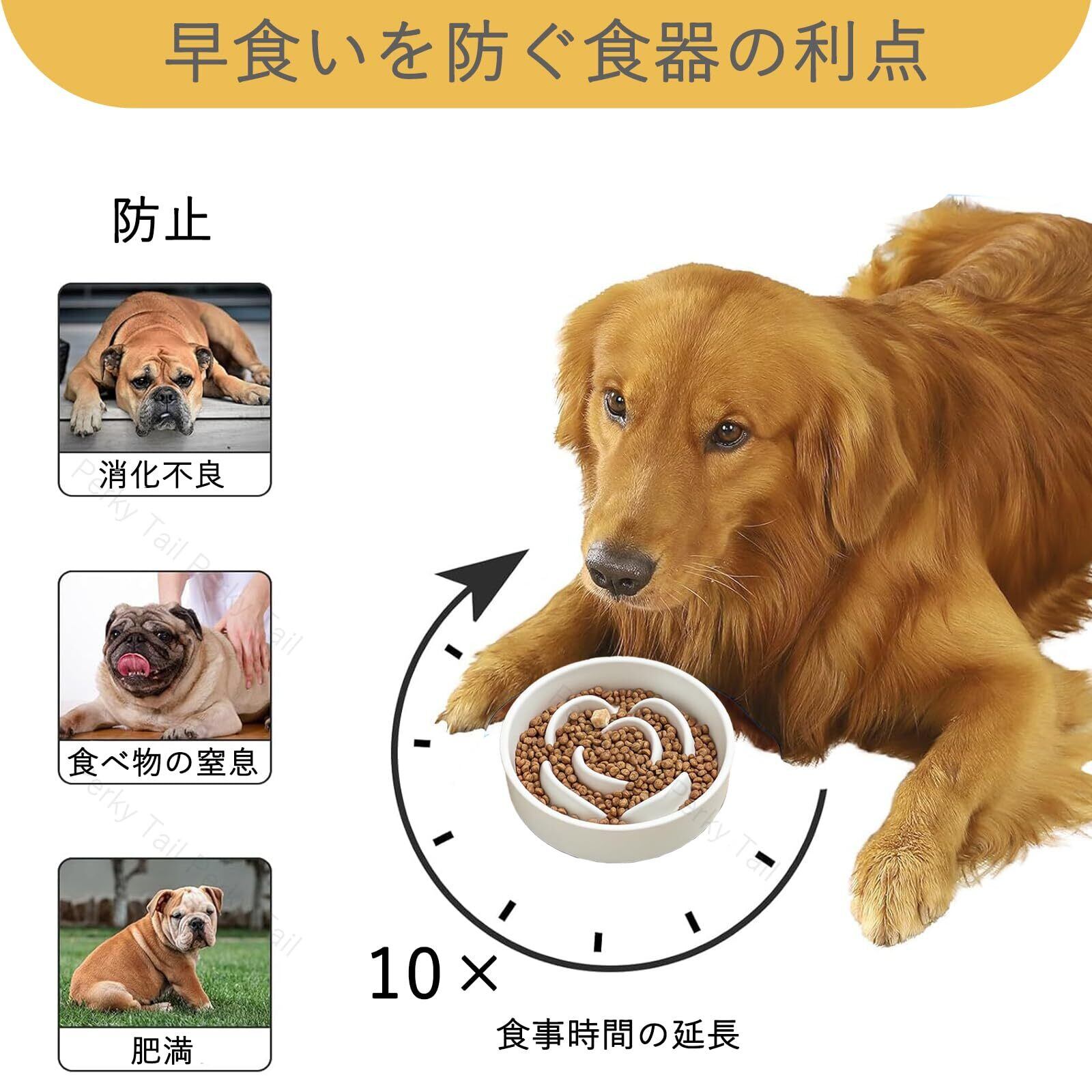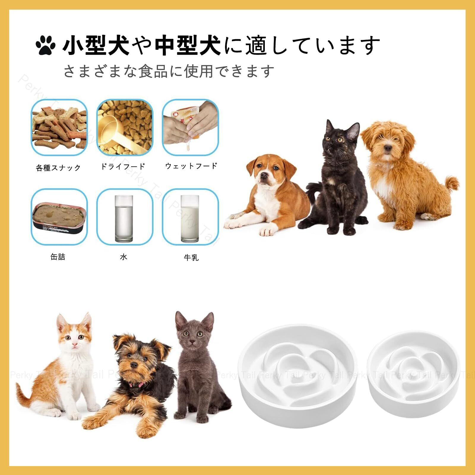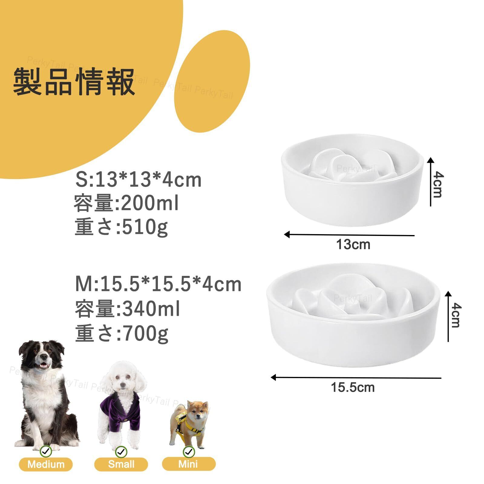 Perky Tail 早食い防止 食器 犬 はやぐい防止皿 小型犬 陶器 皿 滑り止め えさ皿 お手入れ簡単 ご飯皿 健康管理 (S)