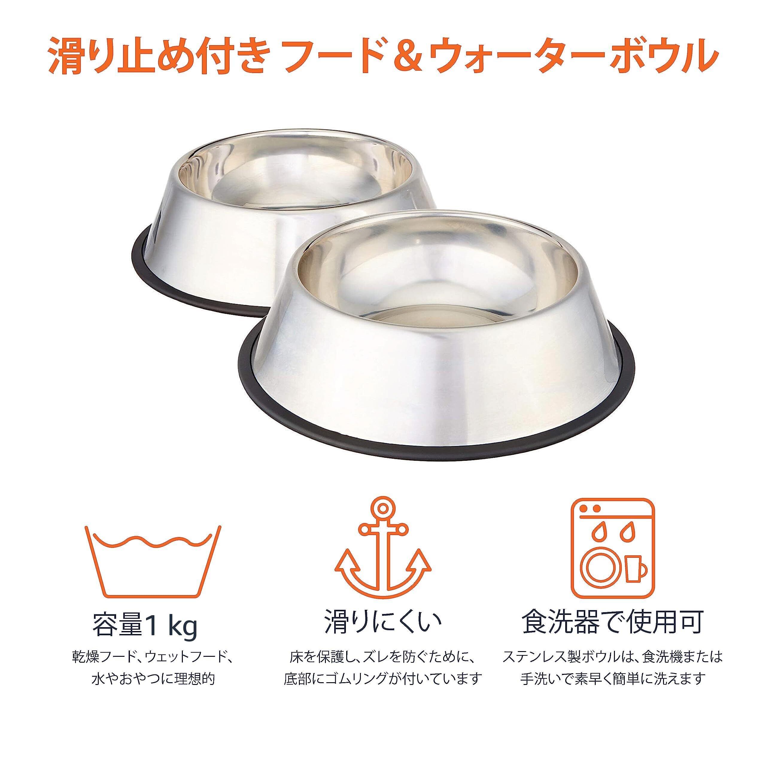 ベーシック ペット用ボウル ステンレス製 2点セット 内径18cm 容量1kg 餌入れ