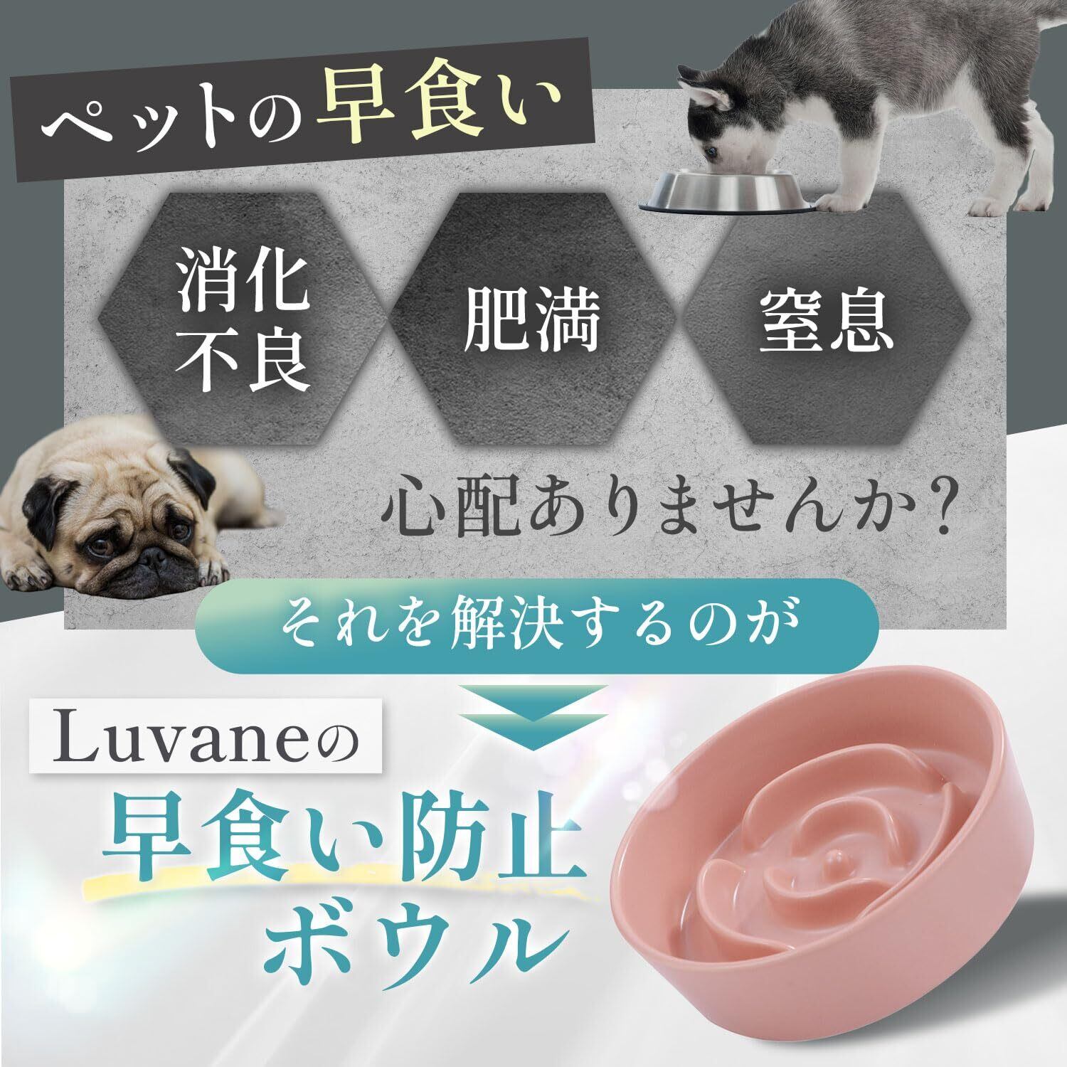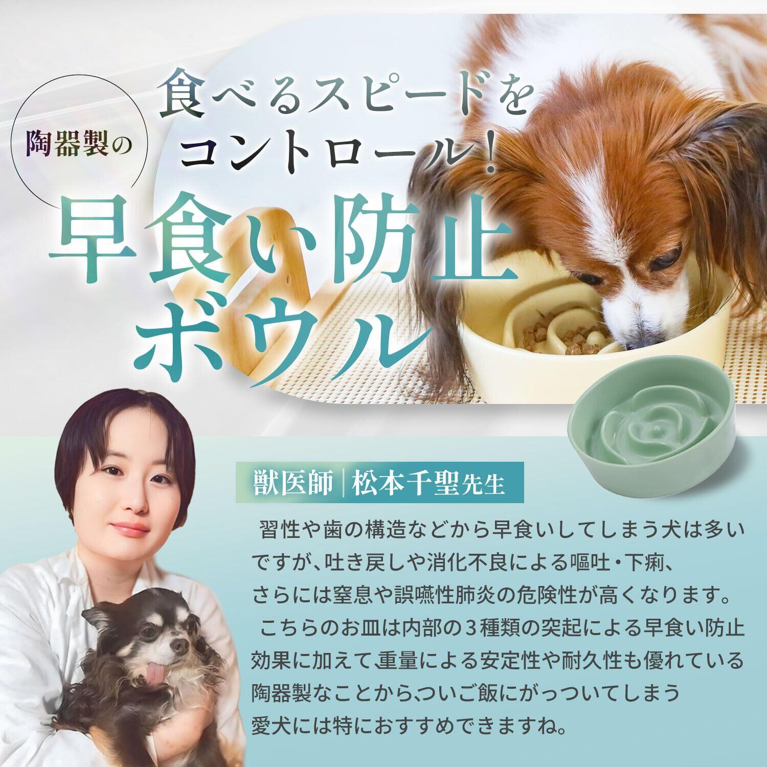 【獣医師監修・健康を守る設計】サイズ:15.3cm×4.5cm 材質:陶器製 本製品は、獣医師監修のもと、ペットの健康を考え抜いたデザインを採用。早食いを防ぐための立体構造が、自然な食事のペースを促し、肥満・消化不良・嘔吐・吐き戻しのリスクを軽減します。猫、小型犬、中型犬に適したサイズ設計で、毎日の食事を安心して楽しめます。