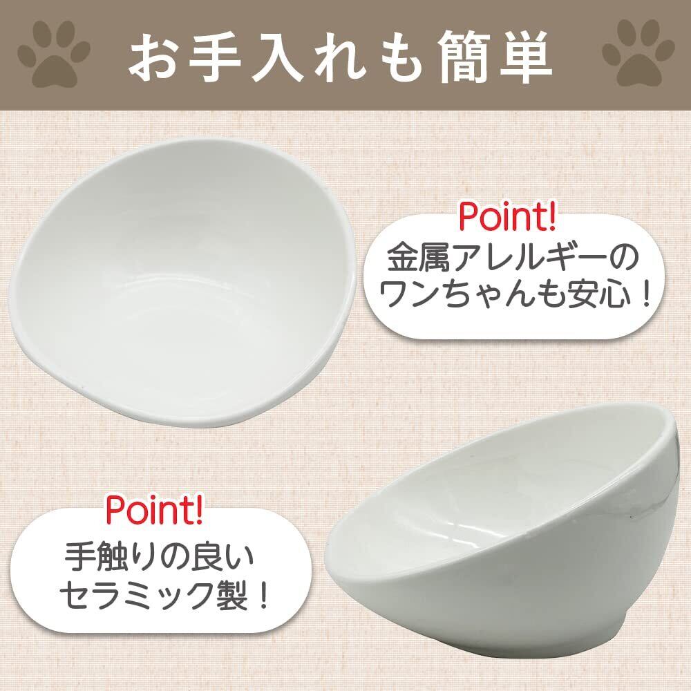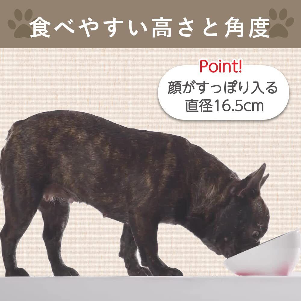 【餌を食べやすい角度】ワンちゃんの体の負担を和らげる角度に設計されていますので、リラックスして食事が出来ます。また、ご飯がそり返しが付いていますので散らばりにくくなっております。