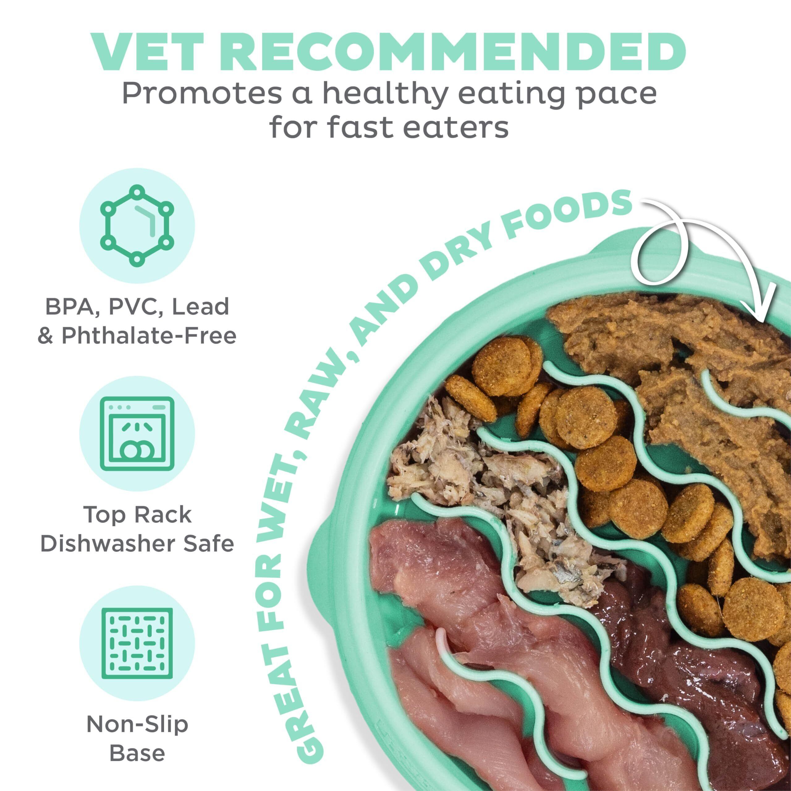 迷路のような突起が食べるスピードをスロウダウンして、フードの吐き戻し、肥満、鼓脹症のリスク低下になります。