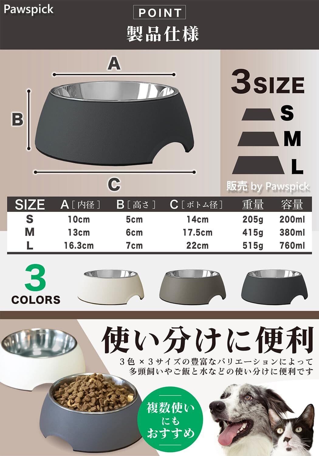 [Pawspick] フードボウル 犬 ステンレス 食器 メラミン えさ皿 水入れ 滑り止め 小型犬 猫 ペット 取り外し可能 餌入れ (カーキグレー, S)
