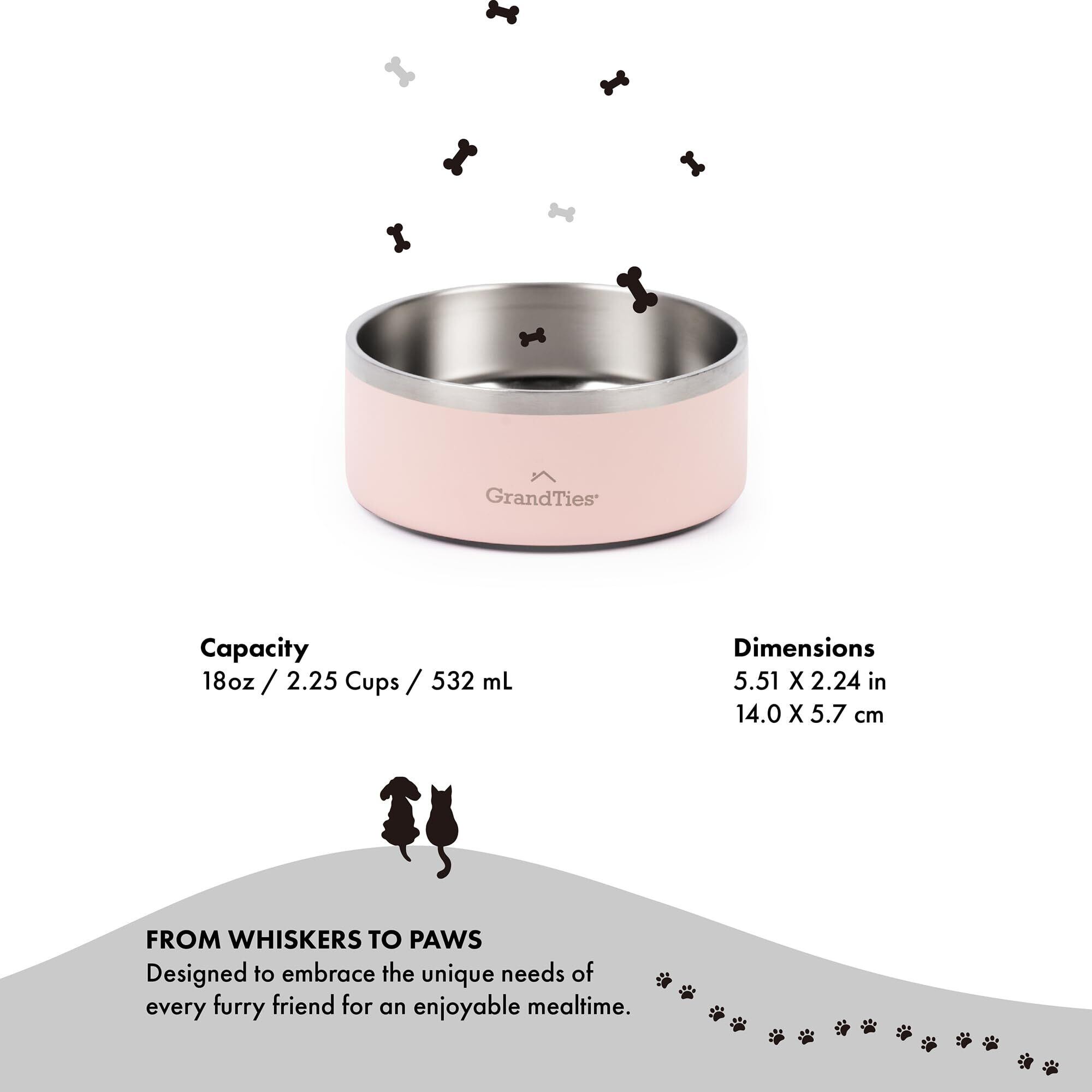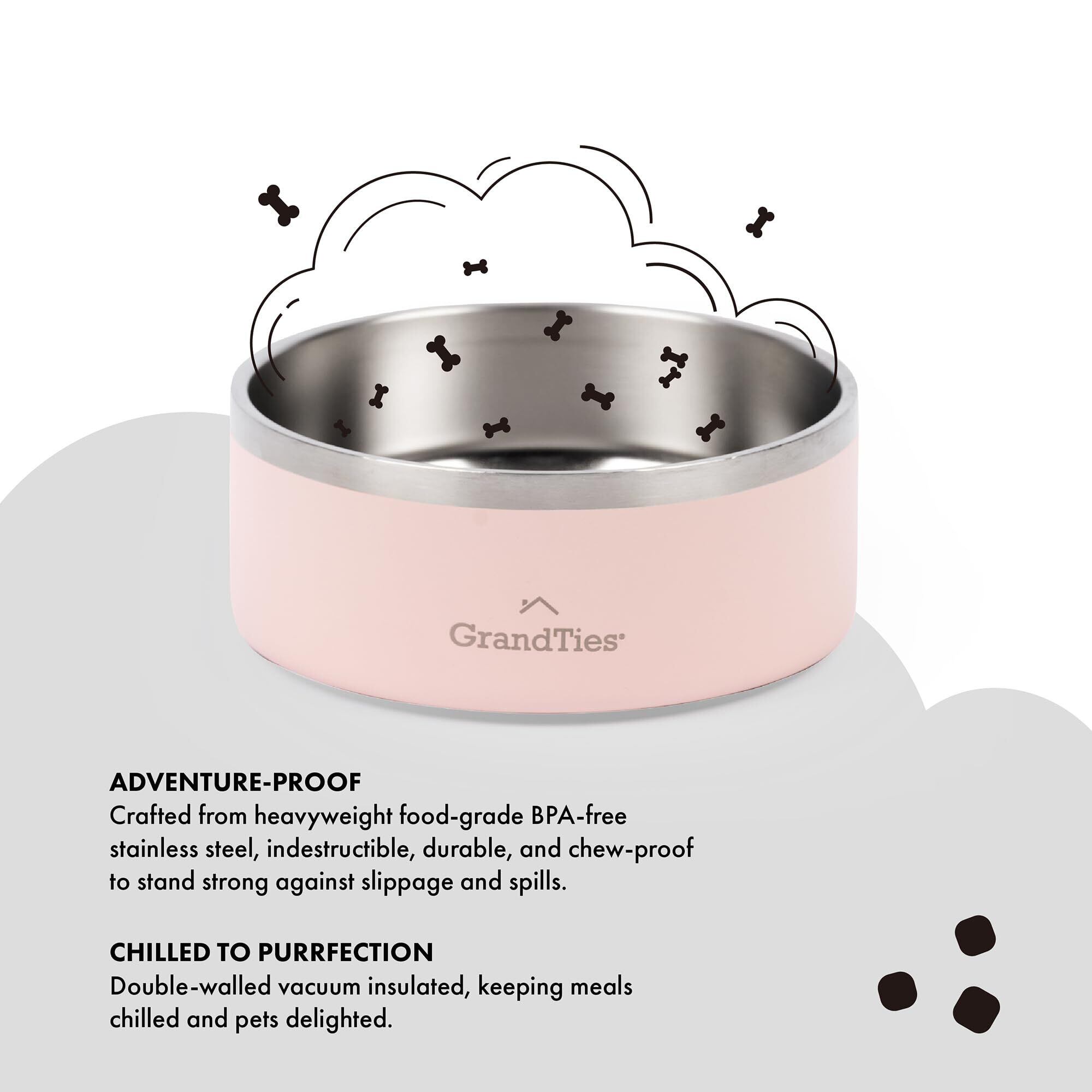 GRANDTIES グランタイズ 真空断熱ペットボウル 餌用ボウル 犬 猫 dog catペット用 おしゃれ プレミアム 水分補給 保温保冷 底面滑り止め付き 自宅 散歩 (ピーチクレム, 532ml SSサイズ)