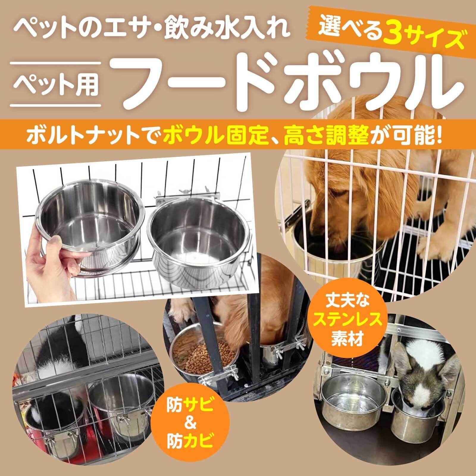 Funriche ペット 犬 餌入れ フードボウル ステンレス 猫 水飲み器 ケージ クレート 固定 ペットボウル 鳥 小動物 食器 水 給水器(S12cm)