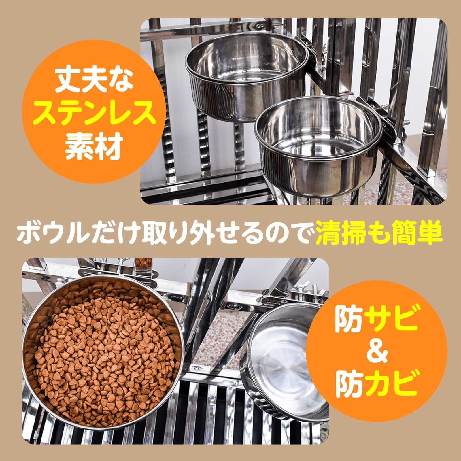【固定できるステンレスフードボウル】ケージにしっかり固定できるペット用餌入れフードボウルになります。ペットが誤ってボウルをひっくり返す心配がなく、高さ調整が可能で、ペットの首への負担を軽減し、快適な食事環境を提供します。