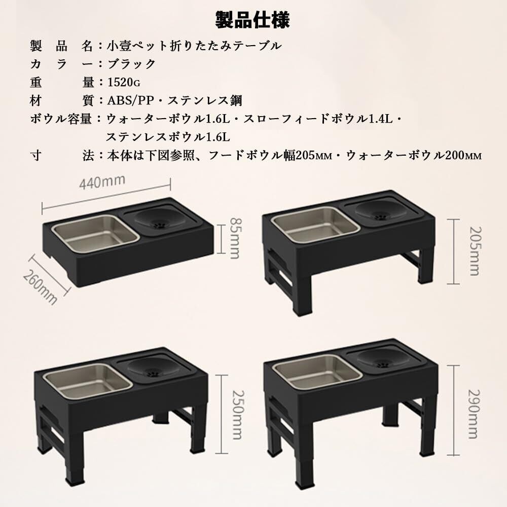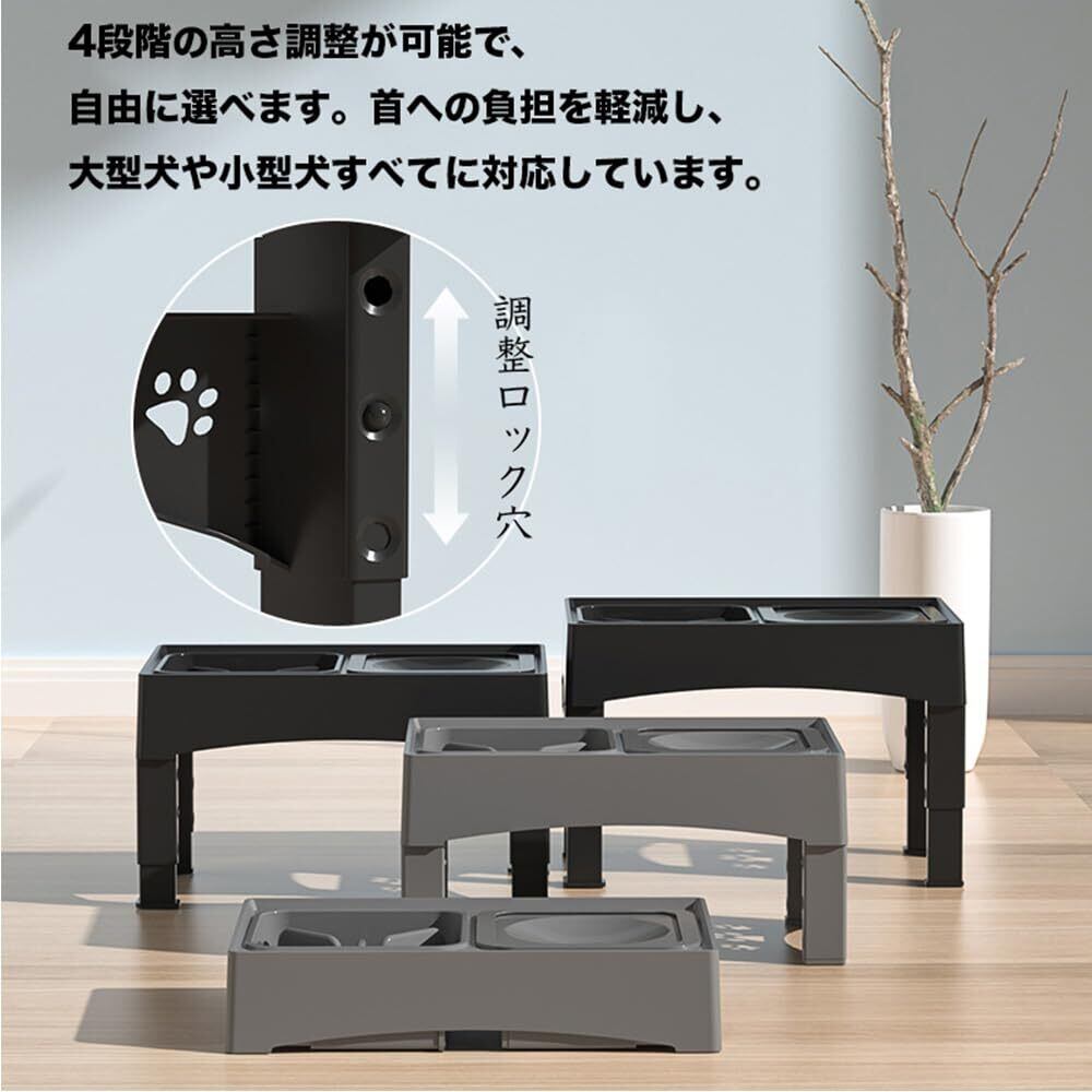 ペットボウル フードボウル 食器台 スタンド 【4段階調節・中大型犬】高度調節可能 早食い防止 低速給水 給餌 ボウル 水やり 滑り止め 犬 猫 食器スタンド (黒)