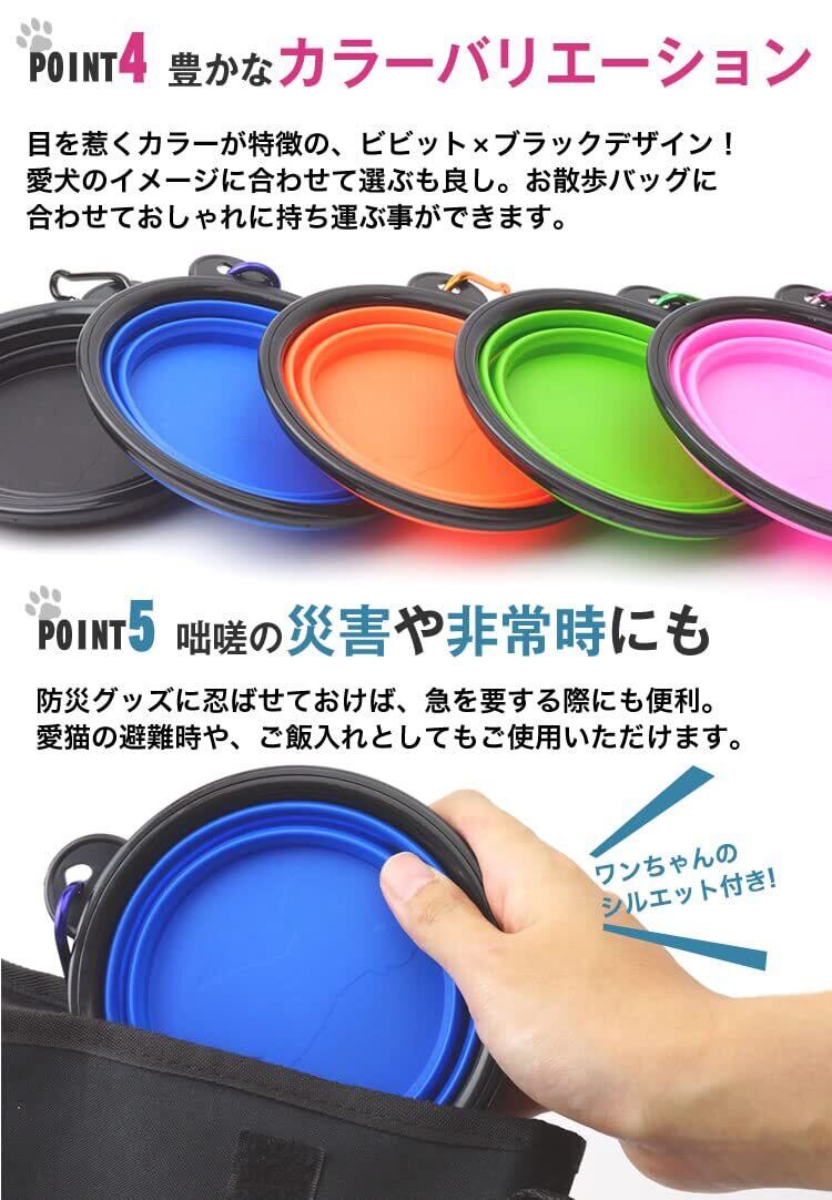 prendre ペットボウル 折りたたみ リング付き シリコン 水飲み 愛犬 お散歩 フードボウル お泊り お出かけ ボウル 給水 シリコンボウル トレイ 水筒 カラビナ付き 容器 安全 犬 ネコ 非常時 ペット 防災グッズ (ブラック) PR-PETBOWL-BK