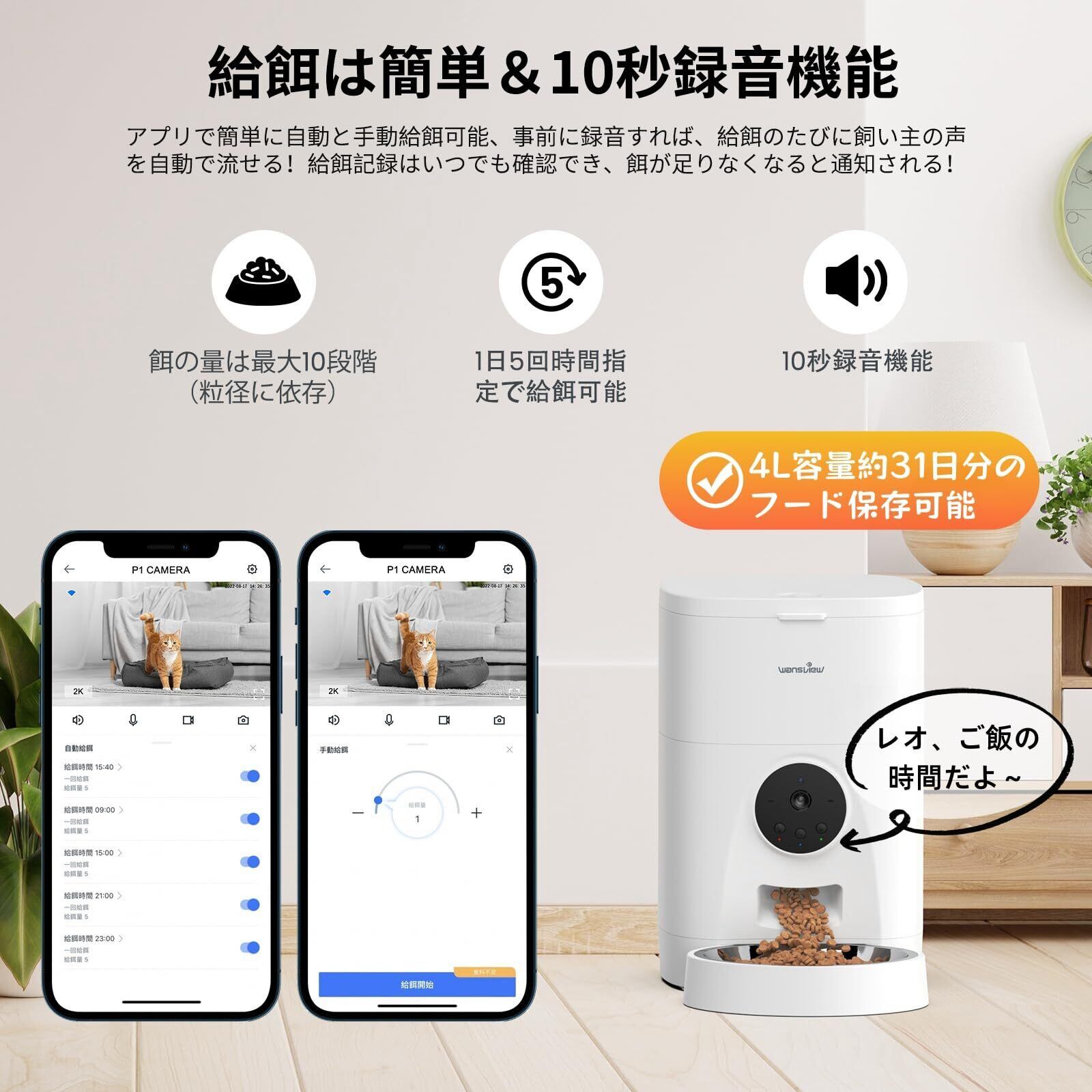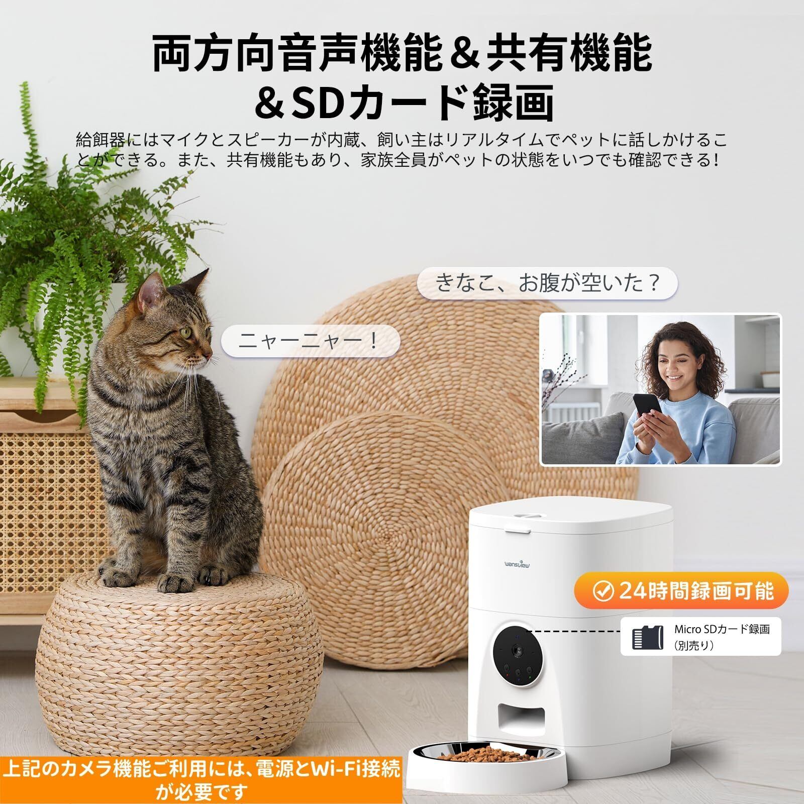 Wansview自動給餌器 猫犬 300万画素カメラ付き 4L大容量 スマホで見守り&遠隔餌やり 音声録音 双方向ライブ通話 1080Pより高精細2Kペットカメラ 1日5食タイマー式餌遣り ステンレスボウル付属(猫ニキビ予防)2WAY給電停電対策 留守番解決 中小型犬/猫/うさぎ対応 2.4GWi-Fi接続/家族リアルタイム共有 自動SDカード/クラウド保存 Alexa連携 (白) 2年品質
