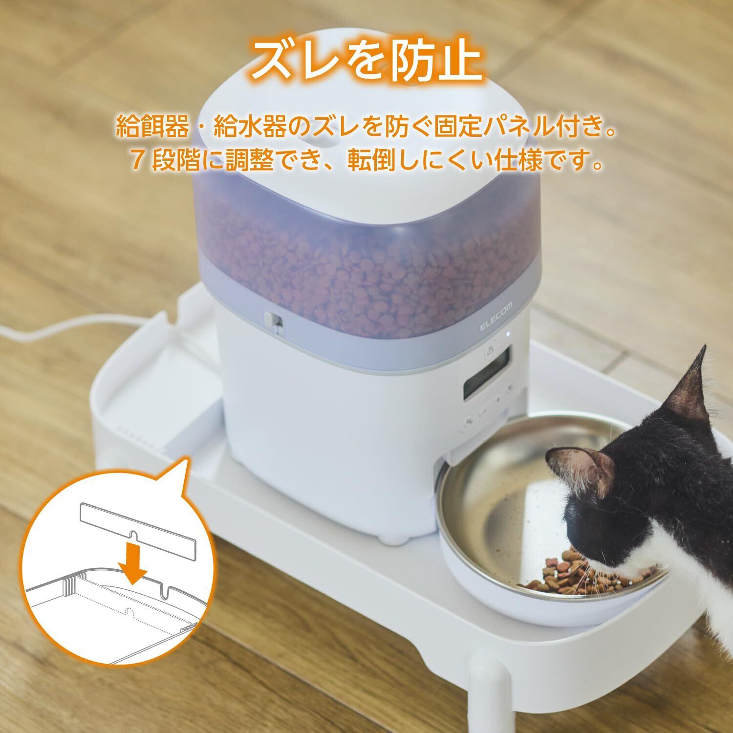 エレコム 自動給餌器 給水器 スタンド 3段階高さ調整 [設置可能サイズ 19.5cm×36.5cmまで] 耐荷重10kg 猫 中小型犬用 幅23.9×奥行38.7cm ホワイト PET-ST01WH