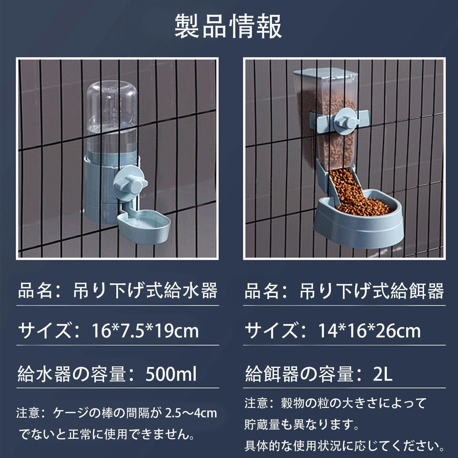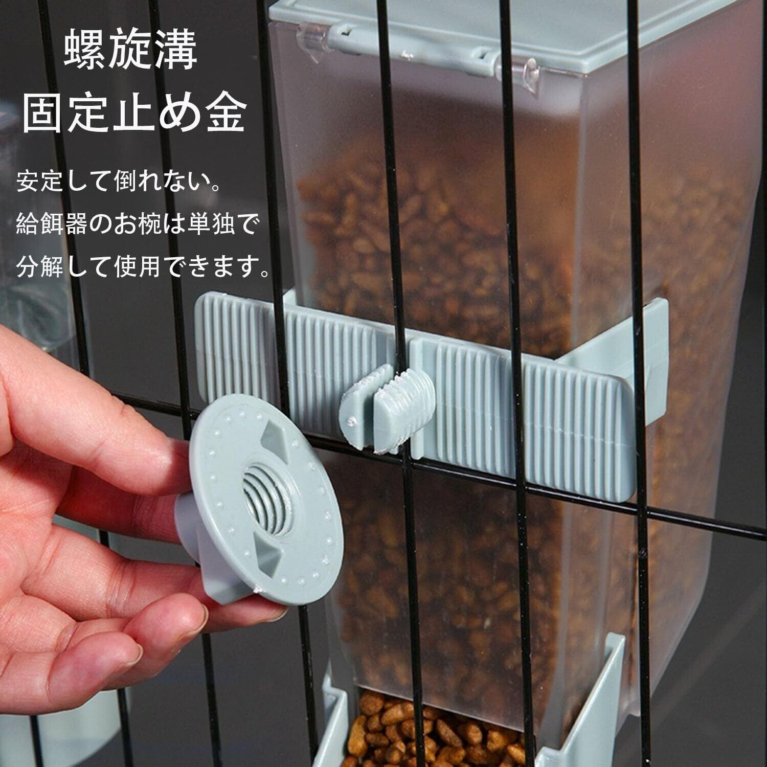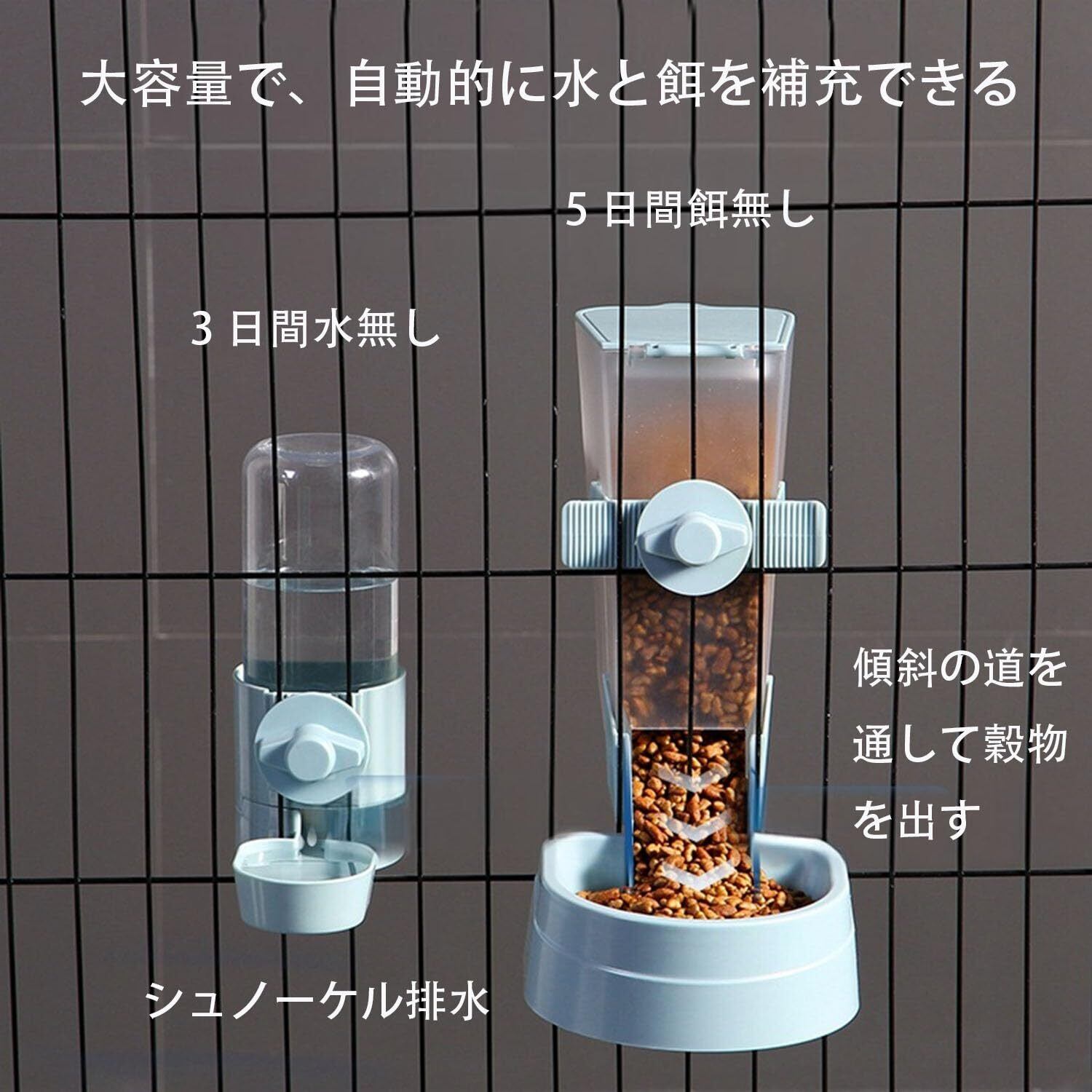 小動物用自動給餌器 ペット 餌入れ うさぎ 犬 猫餌自動 エサ入れ ケージ取付型 転倒防止 固定型 食べやすい 電源不要 留守番対応 大容量(ブルー)