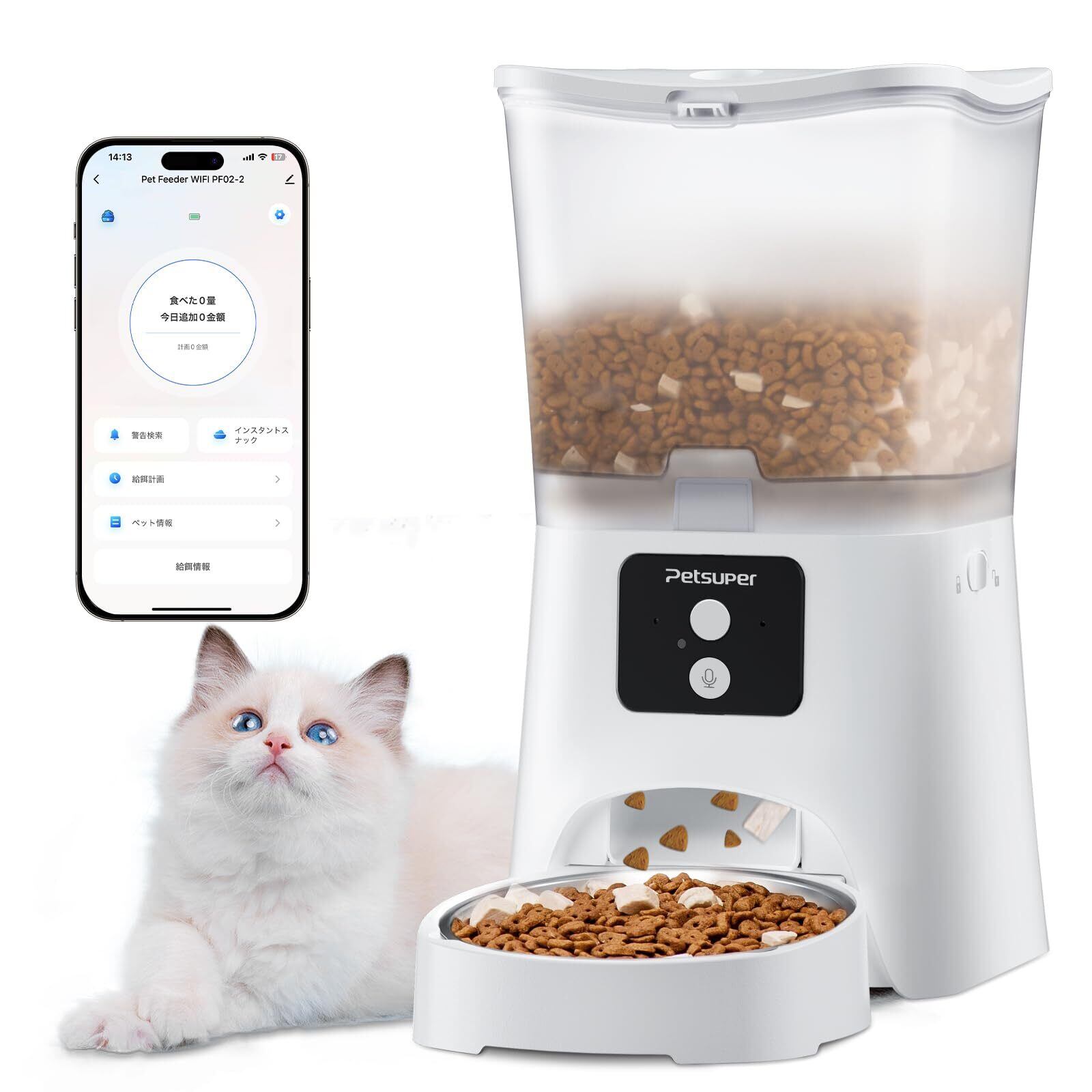 自動給餌器 猫 アプリ操作 中小型犬用 wifi 3L 早食い防止 定時定量 1日6食 水洗い可能 3重鮮度保持 2WAY給電 お手入れ簡単 手動給餌 日本語対応説明書付き Android/IOS対応 ホワイト