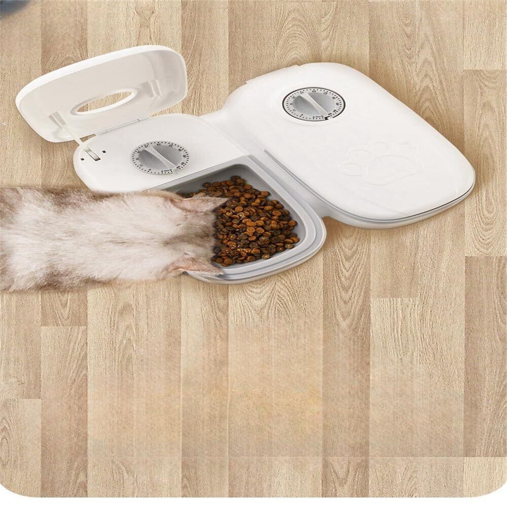 ペット用オートフィーダー 自動餌供給システム 犬猫用タイマーフィーダー 洗浄可能 お留守番サポート 簡単メンテナンス 自動給餌デバイス ペットフード用具 (シングルミールグレー)