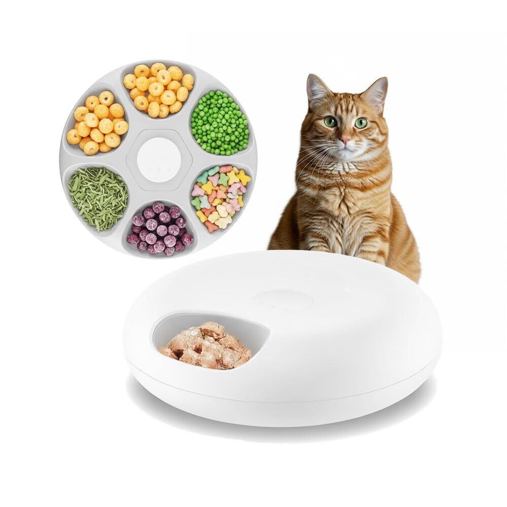 獣医師推奨スマートフィーダー6食分WIFI自動ペットフィーダーウェット&ドライフードディスペンサー(アイスパック2個付き)猫と犬用リモートフィーダーモバイルアプリコントロール鮮度保持カード盗難防止
