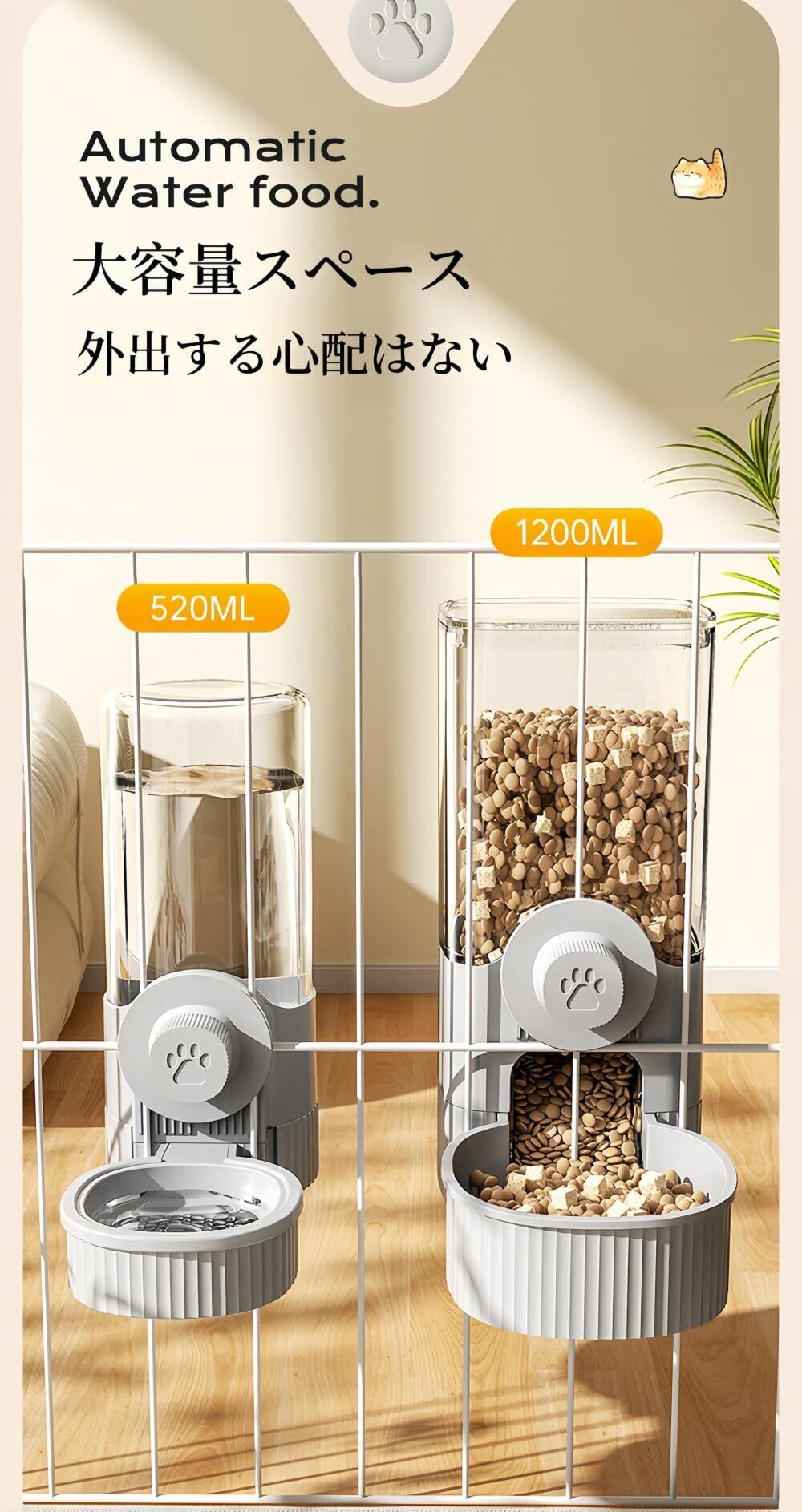 自動給餌器 猫 犬 餌やり器 ハンギングケージタイプ クリップオンタイプ 大容量1L 75°傾斜 食べ物がくっつかない 防湿 鮮度保持 ケージ内の小型犬 猫 小動物に適しています (給餌+給水2 IN 1)