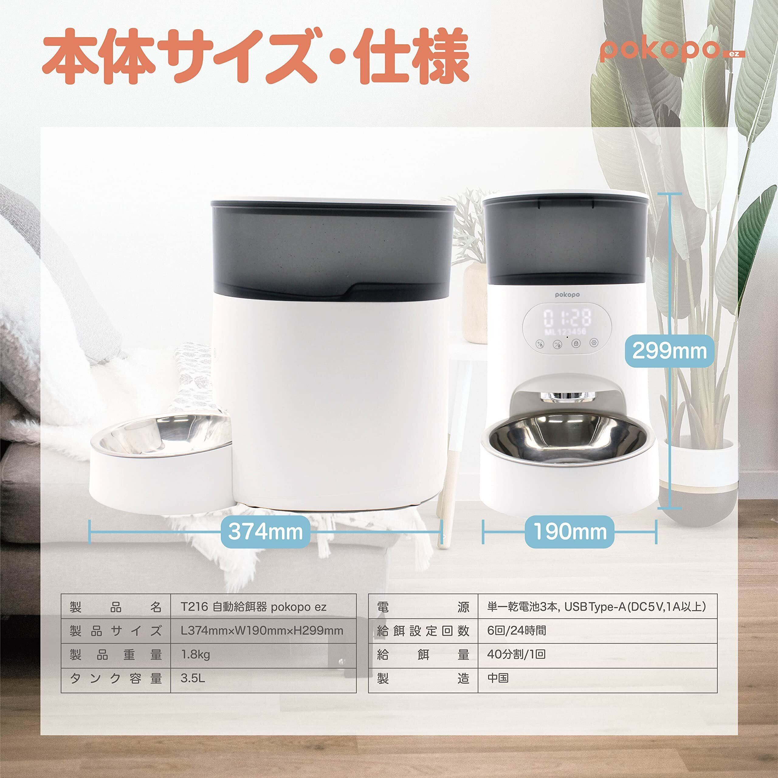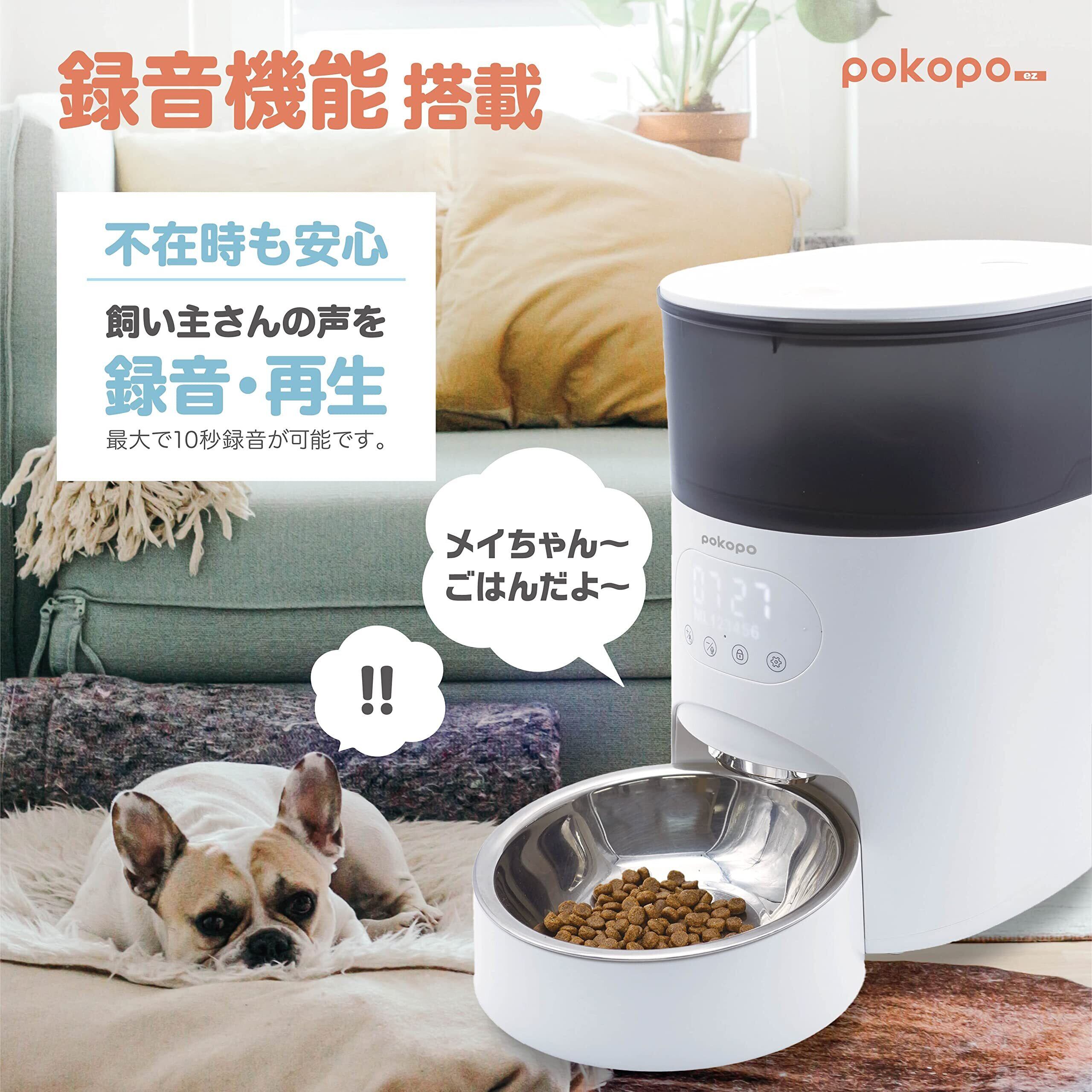 [イツワペット] Pokopo 自動給餌器 自動餌やり器 餌やり機 犬 猫 録音機能 USB電源 乾電池 単一電池 2WAY給電 水洗い可能 スケジュール登録 タンク容量3.5L 最小設定5g 40段階設定可能