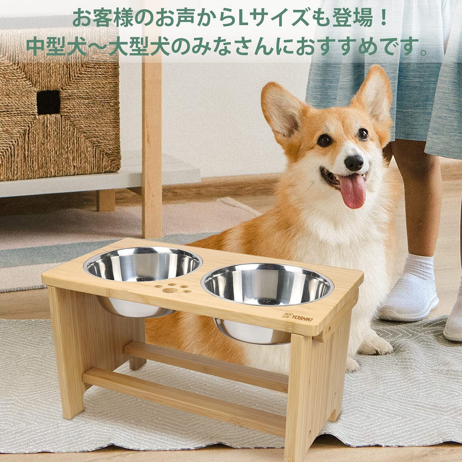良木工房(YOSHIKI) 愛犬・愛猫の食生活を快適に~ 竹製 ペット用食器台 犬 餌台 犬用 猫用 食器台 犬 餌台 犬猫えさ入れ ごはん皿 水入れ フードボウルスタンドセット (L) SDGs 脱プラ YK-PFL