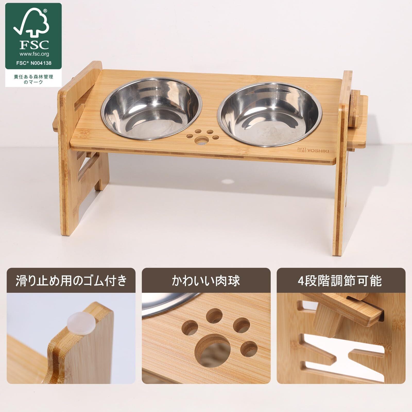 【FSC認証製品】良木工房(YOSHIKI) 愛犬・愛猫の食生活を快適に 竹製 犬 餌台 猫 皿 ペット ご飯台 食事台 犬の食事用皿 犬 器 台 餌入れ 食器台 猫 水入れ フードボウル 餌台 斜め ご飯皿 SDGs エコ素材 YK-PW1