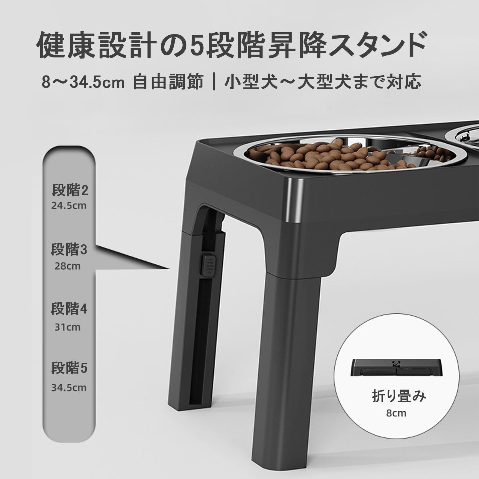 付属コンポーネント ステンンレスボウル2枚付属(20×6.6cm), 昇降式ドッグボウスタンド