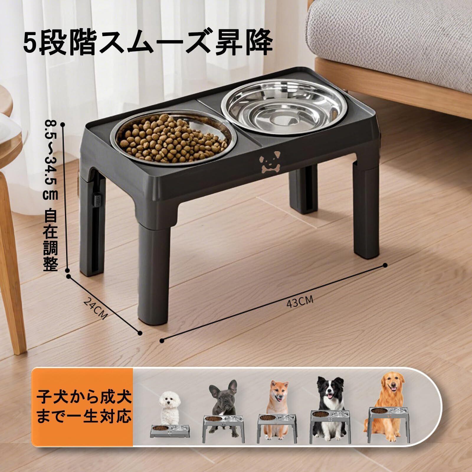 【獣医師推奨】Cmswiftify 犬 食器台 犬 えさ台 中型犬~大型犬向け ペット 餌台 ステンレスボウル 食器 エサ台 ペット用昇降式食器台|4段階高さ調節(24.5cm/28cm/31cm/34.5cm)|ステンンレスボウル2枚付属(20×6.6cm)|多頭飼い・ペット対応|関節負担軽減・吐き戻し防止設計|屋外/動物病院兼用 餌入れ 犬 ご飯台 (ブラック)